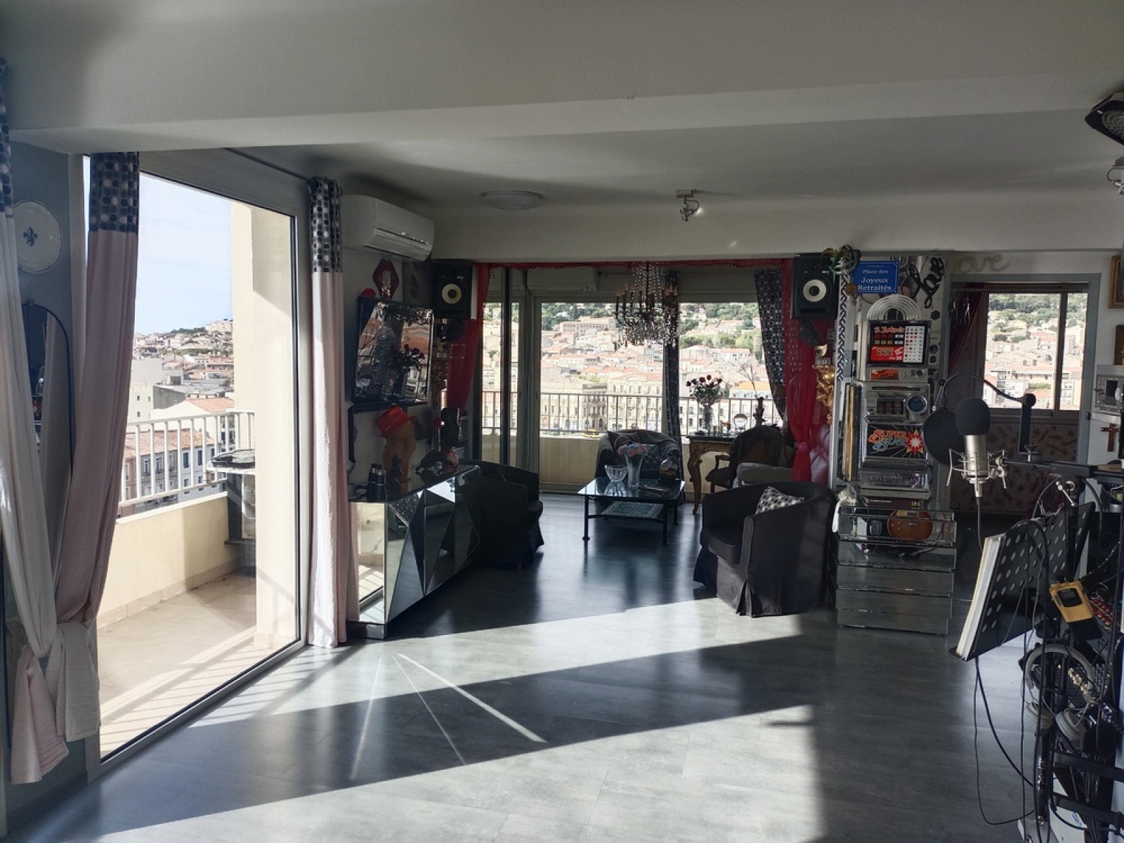 Sète ( VUE EXCEPTIONNELLE ) Situé au 9 ème étage ( ascenseur ) d'une résidence sécurisée ( année copropriété 1958 ), appartement traversant ( triple exposition ) 2/3 pièces loi carrez 75.62 m2 habitables composé : Pièce de vie principale ( type loft ) ouvrant sur un balcon filant ( vue exceptionnelle et panoramique sur la mer méditerranée et le Mont Saint Clair ), espace salon / balcon ( vue sur le Canal ), 1 chambre / placard, cuisine ouverte / équipée ( accès direct sur une loggia ), salle d'eau, wc séparés. clim réversible. Double vitrage, volet roulant, électricité refaite. Très bon état général. Matériaux et prestations de qualité. Ascenseur, visiophone. Garage Fermé. Proximité tous commerces et écoles. Bien soumis au statut juridique de la copropriété 34 lots, syndic professionnel. La quote part des charges dans le budget prévisionnel des dépenses courantes est de 1380 € / an dont 759 € de charges récupérables soit 55 %.Taxe foncière 2025 / 1895 euros dont 334 euros d'ordures ménagères. Investissement sûr pour sa retraite !Les informations sur les risques auxquels ce bien est exposé sont disponibles sur le site Géorisques : www.georisques.gouv.fr