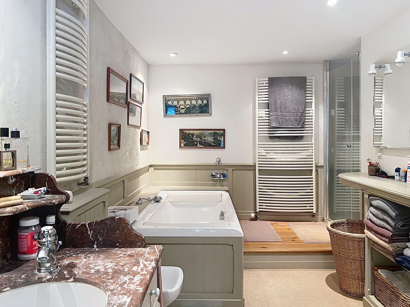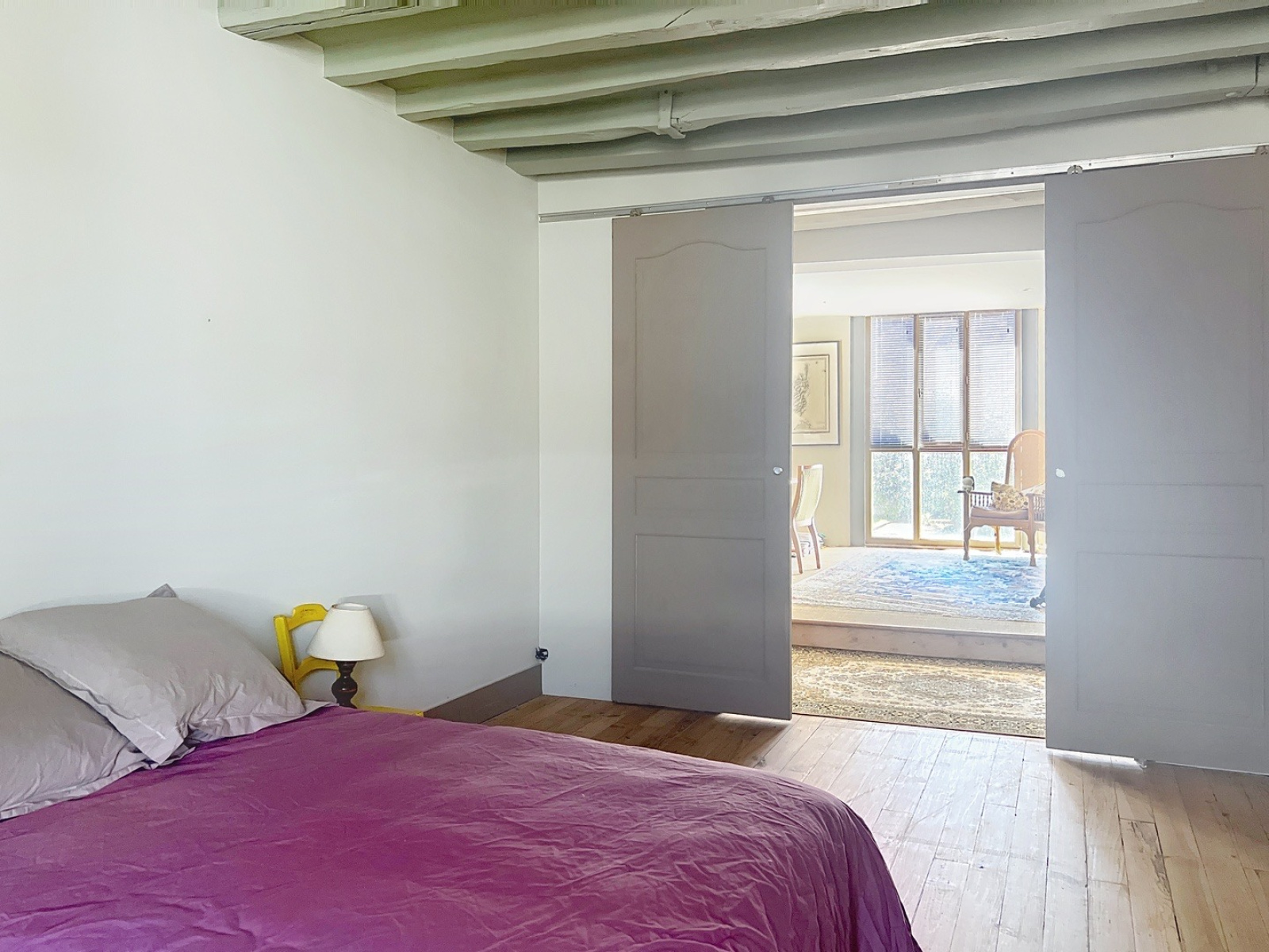 La maison principale (234 m² habitables) a une fcaçade sur rue et l'autre sur cour. Elle offre de beaux volumes sur trois niveaux. Elle comprend : une grande cuisine dinatoire avec piano de cuisson et hotte professionnelle, Un salon et une salle à manger traversant, à l'étage : 4 belles chambres, une grande salle de bains, un dressing et un bureau et au deuxième étage des grands combles aménageables de 90 m2 et aussi cave, atelier et annexe de 65 m2. Total des surfaces au sol pour cette maison : 388 m2. Terrain de 278 m2 devant la maison sur cour.