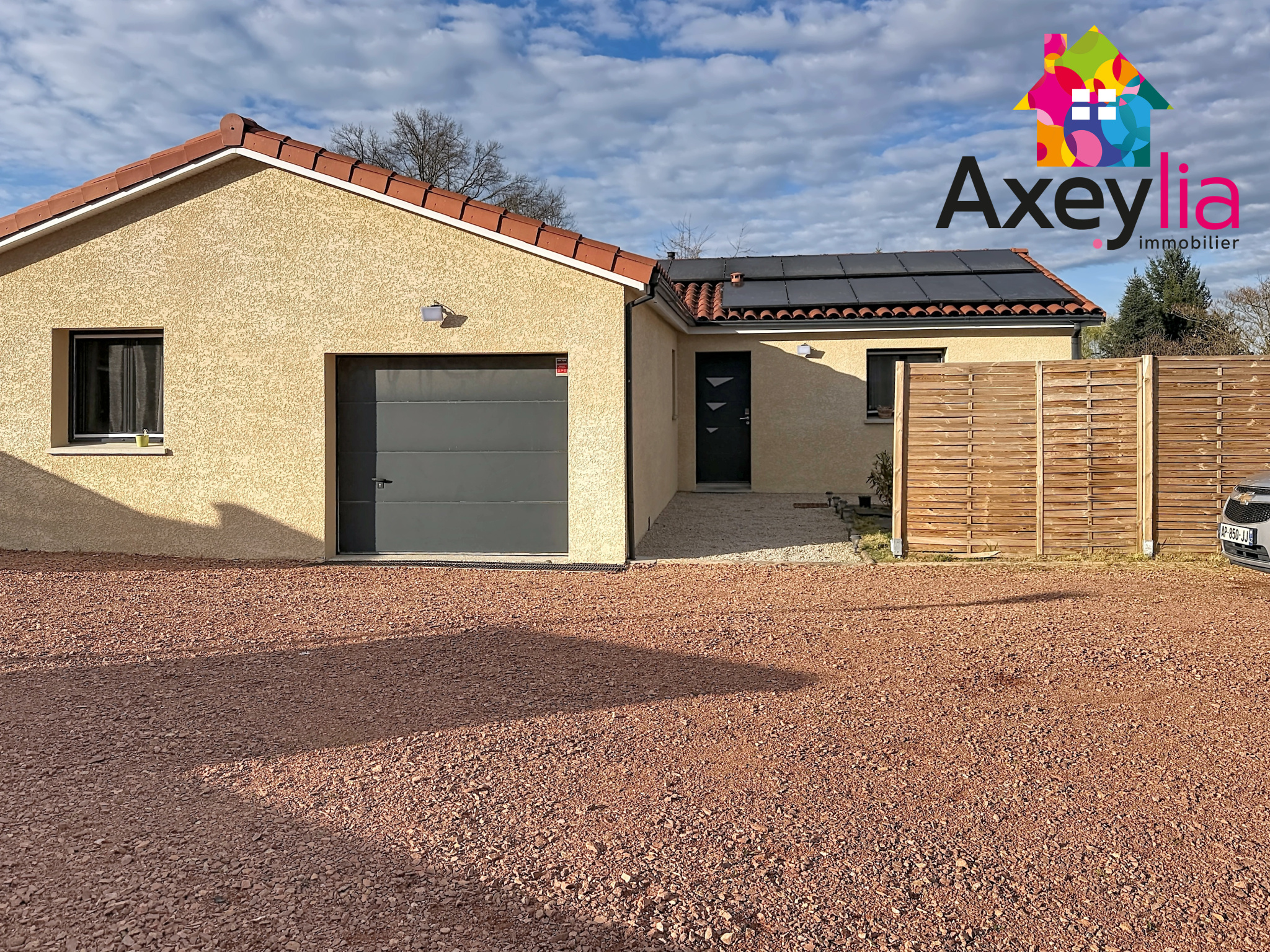 INFOS APPELEZ JULIEN 06 23 91 88 86 - A VENDRE - NOAILLY - AXEYLIA L'AGENCE À ST ROMAIN LA MOTTE, MEMBRE DU RÉSEAU NATIONAL EXPERTIMO, vous propose à 7 minutes de Mably, dans un secteur calme et résidentiel, cette maison de plain-pied de 2020, comprenant entrée, cuisine américaine, séjour double, cinq chambres dont une avec dressing, salle de bains/douche, WC et garage attenant.