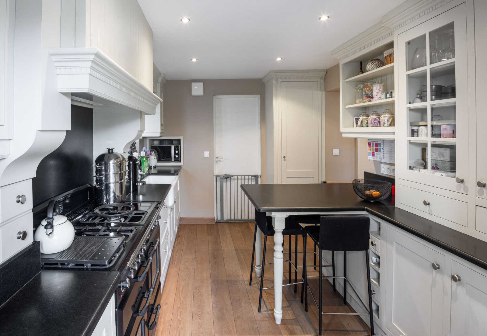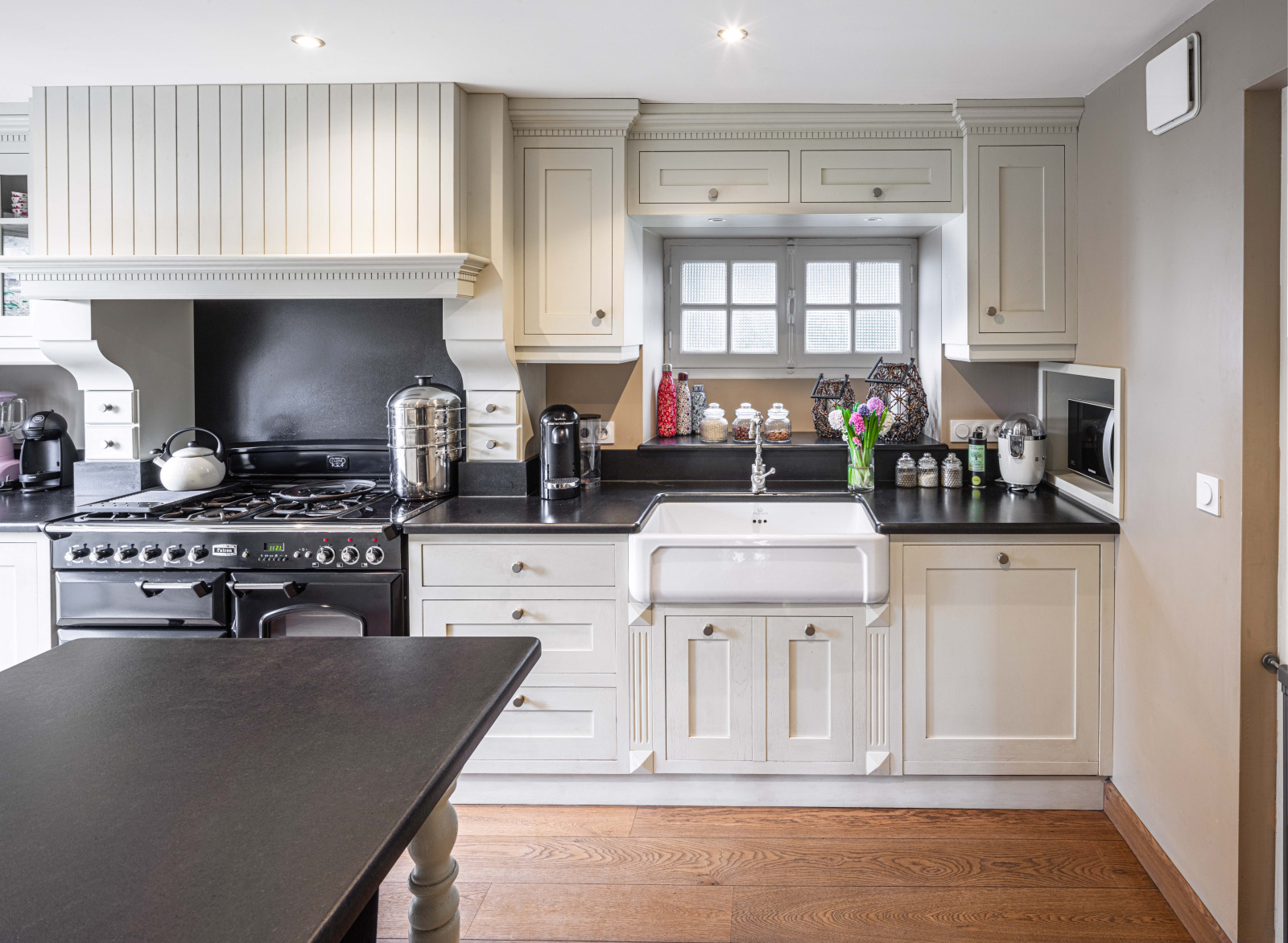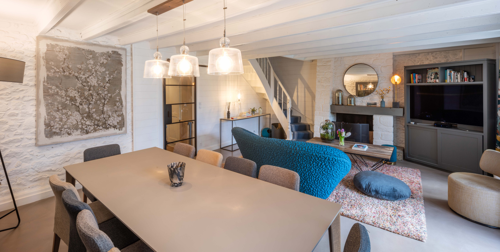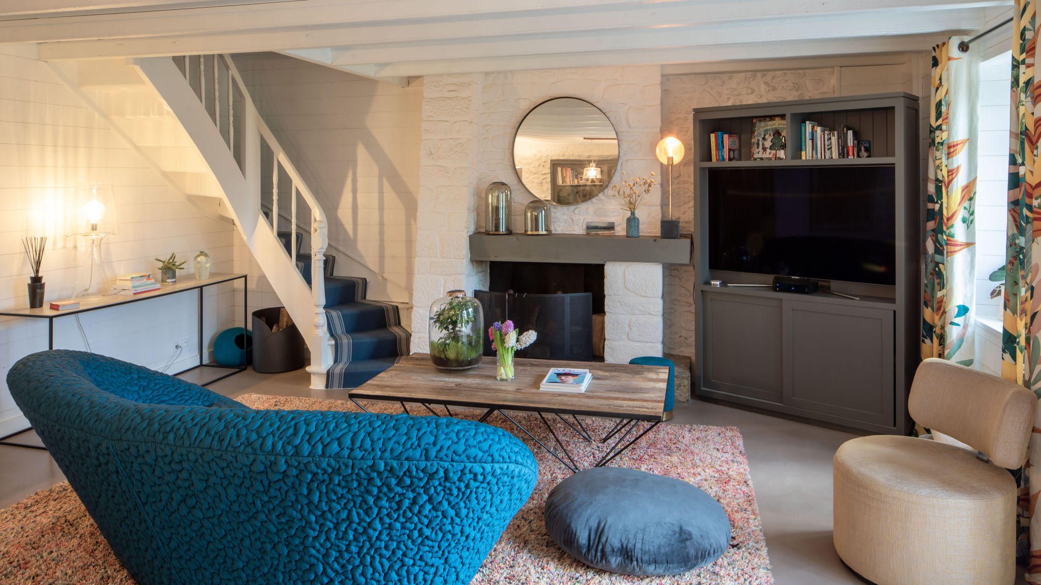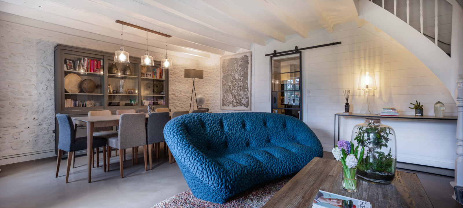 La maison se compose d'une pièce de vie avec cheminée, cuisine entièrement équipée, buanderie. À l'étage supérieur, un vaste palier dessert quatre chambres, salle d'eau, salle de bains, WC, grand bureau. Au deuxième, on retrouve deux chambres avec salle de bains privatives. Toutes les chambres sont sur parquets d'origine.