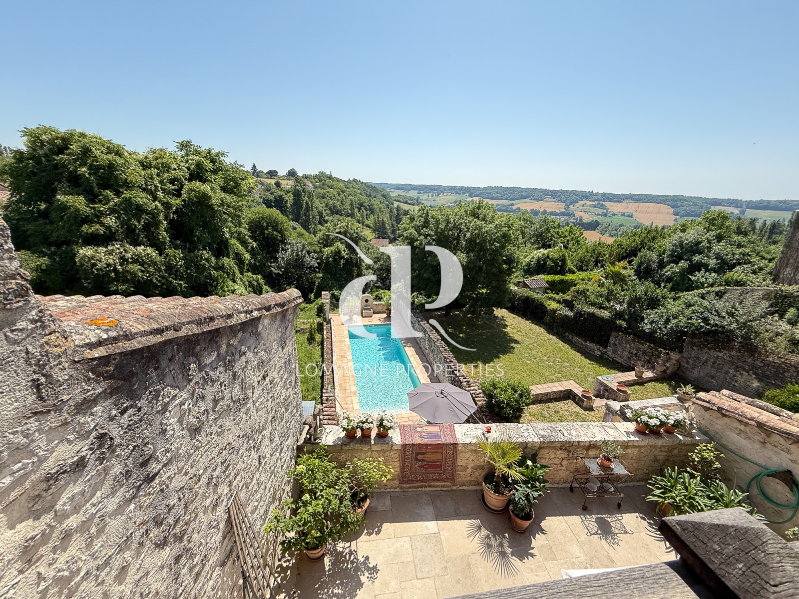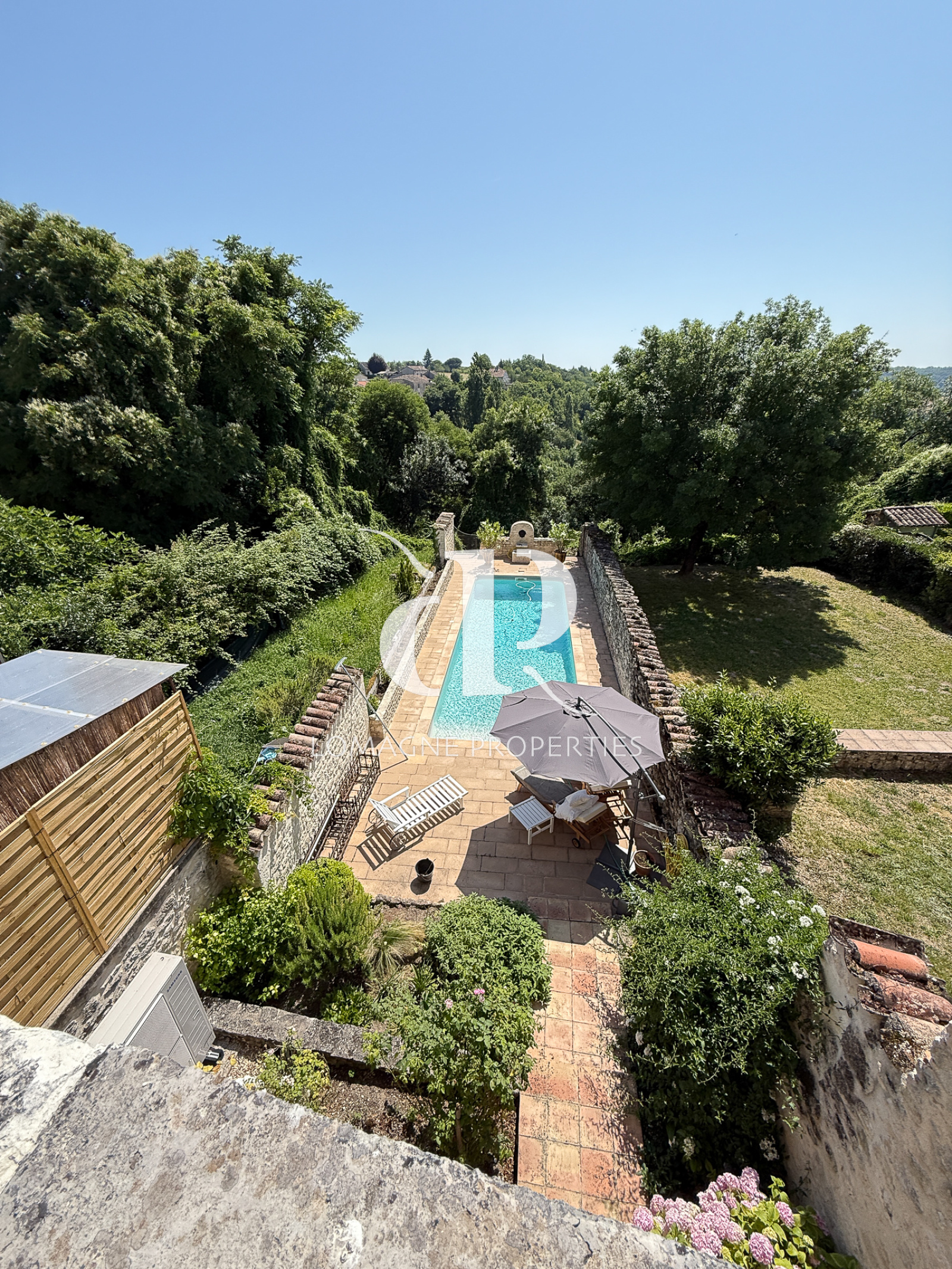 Au cœur d'un bourg animé du Quercy Blanc, cette élégante maison de ville en pierre blanche du XIVe siècle allie grandeur