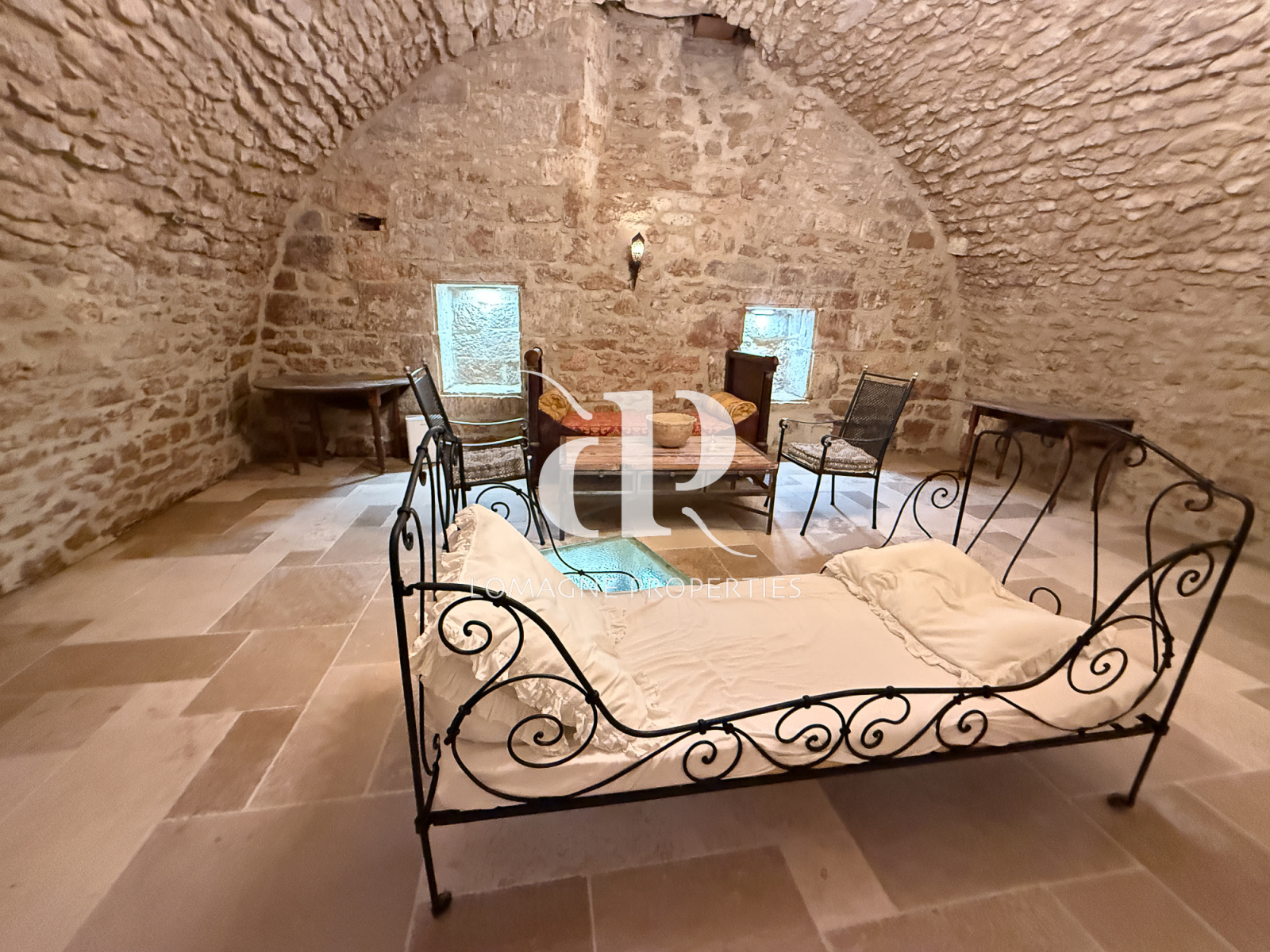 - Cave voûtée en pierre - salle de séjour (44m) - sol en travertin