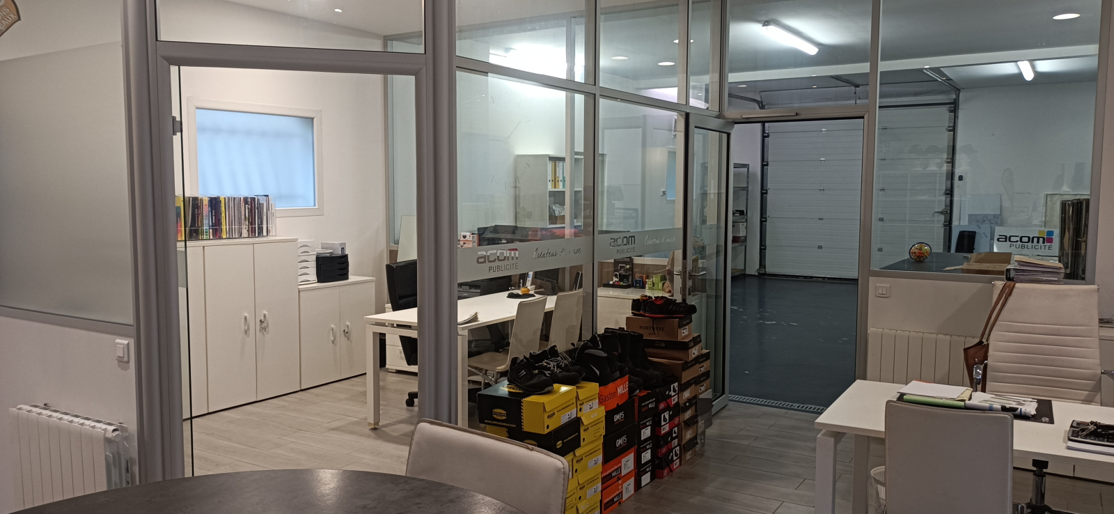 1 local d’activités et une pièce de stockage pour environ 90 m² hauteur 3ml avec porte sectionnelle motorisée 3x3, chauffage électrique par aérothermie. WC indépendant + Coin cuisine, enseignes avec rampe lumineuse à led.