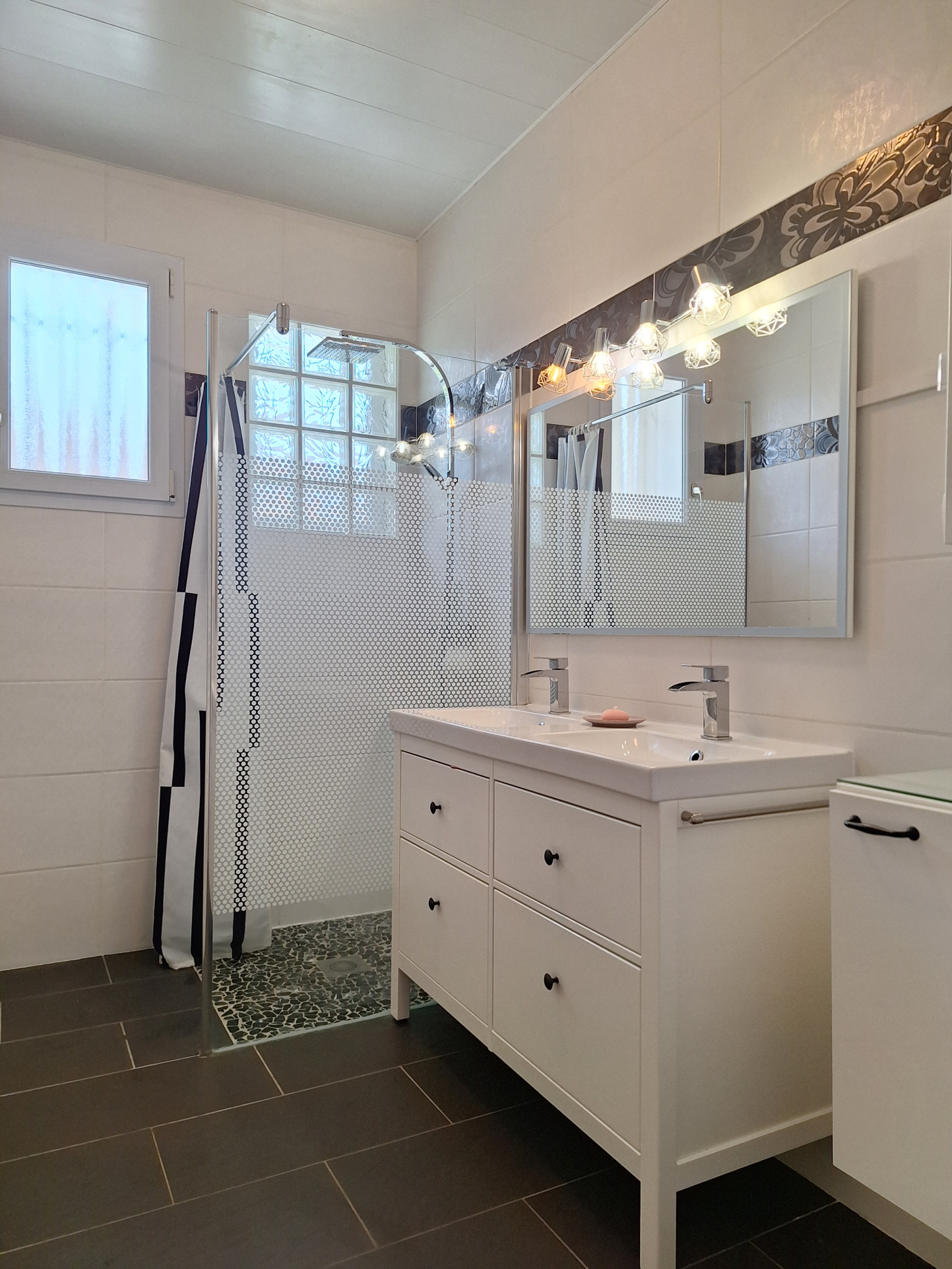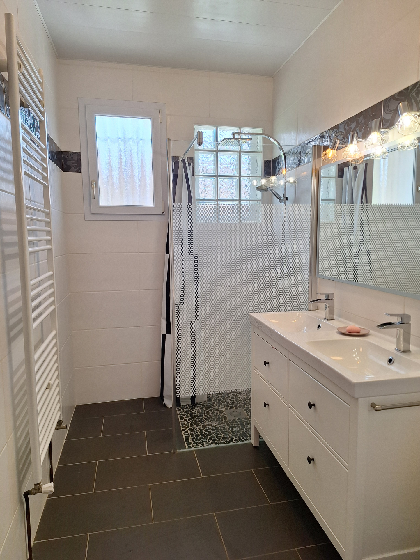Une pièce aménagée avec douche et WC indépendant, idéal adolescent.