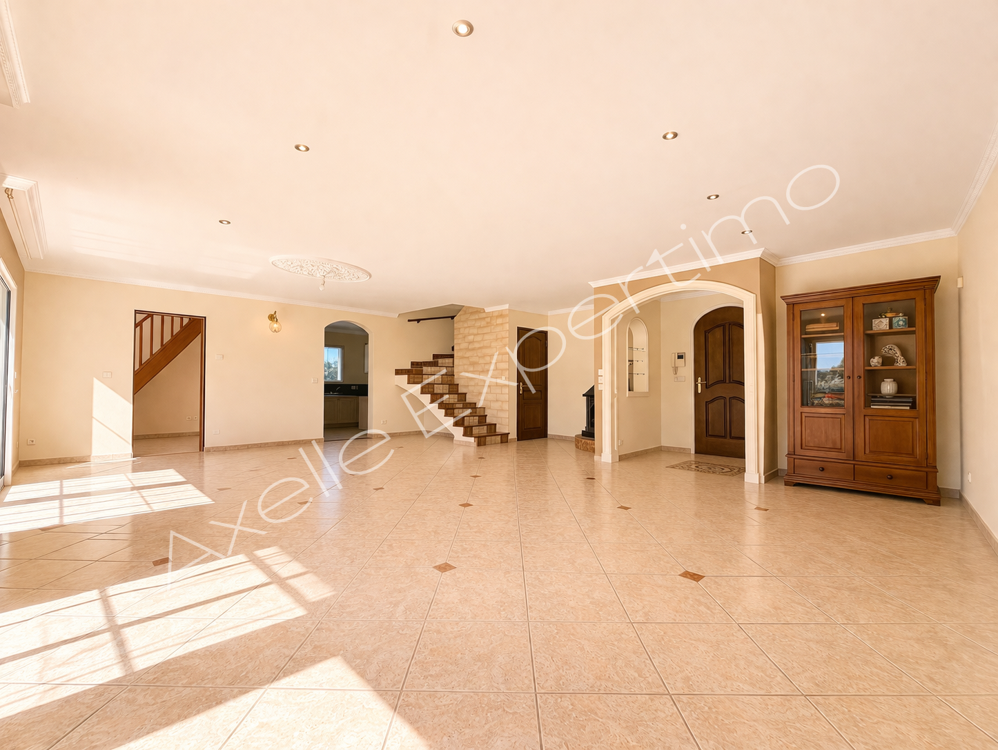 Dès l’entrée, vous serez séduits par les volumes généreux et la luminosité naturelle. Le vaste séjour-salon de 48 m², largement ouvert sur l’extérieur grâce à de grandes baies vitrées, prolonge naturellement l’espace de vie vers une terrasse exposée plein sud et la piscine. Un véritable lieu de vie pensé pour partager des moments privilégiés.