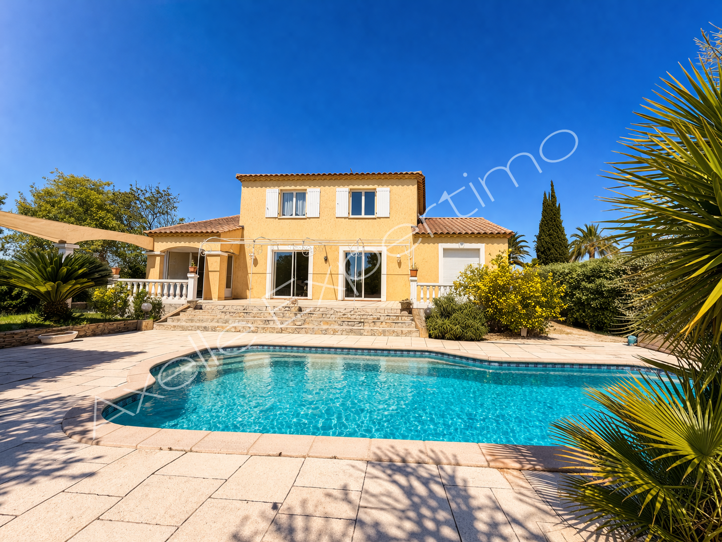 À l’extérieur, tout est réuni pour profiter pleinement du climat méditerranéen : piscine, terrasse ensoleillée et cuisine d’été équipée (four à pizza et barbecue) créent un véritable espace de réception, idéal pour recevoir toute l’année. Un local technique en sous-sol ainsi qu’un espace atelier complètent l’ensemble.