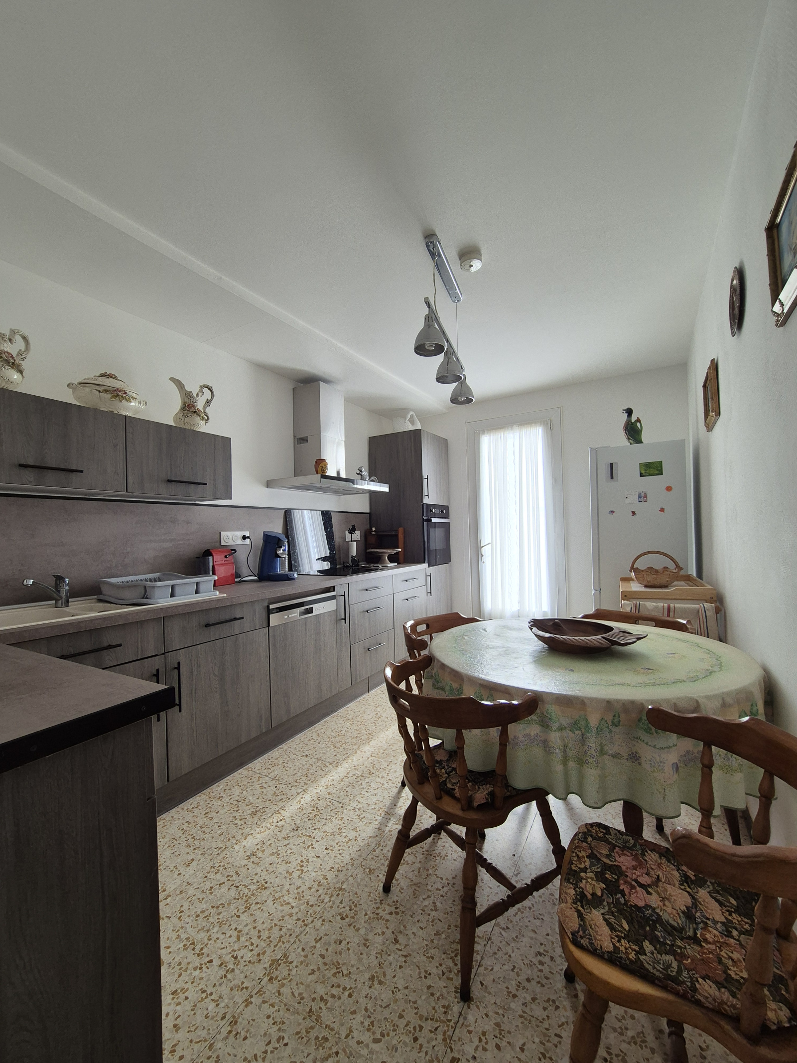 Vous disposez d'un garage de plus de 14m2 avec porte sectionelle electrique.