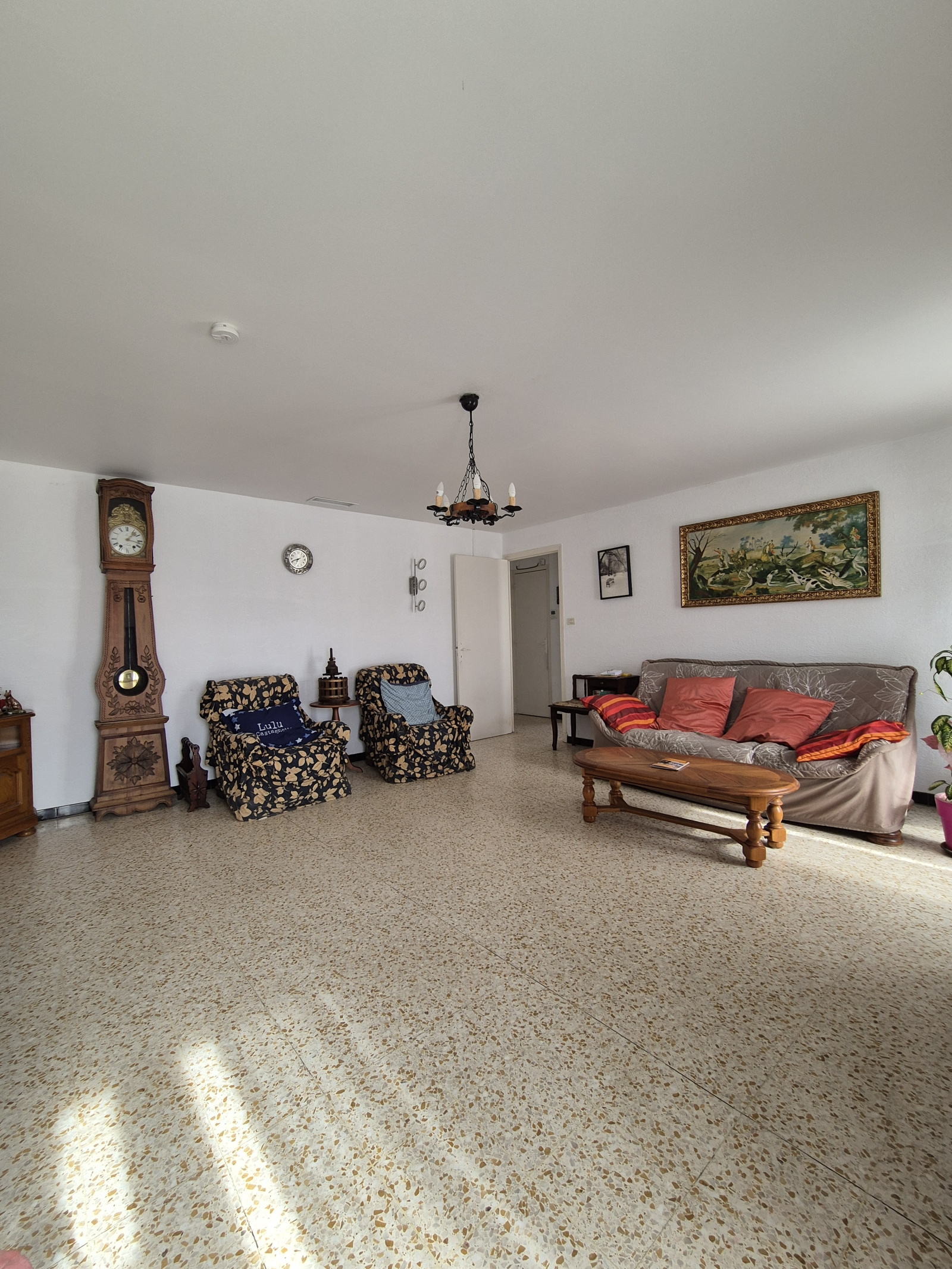 Elle se compose d'un séjour de plus de 27m2 avec possibilité d'ouvrir sur la cuisine équipée de plus de 12m2, 3 grandes chambres ( 14,5, 14 et 12m2 ), une salle de bains et un wc.
