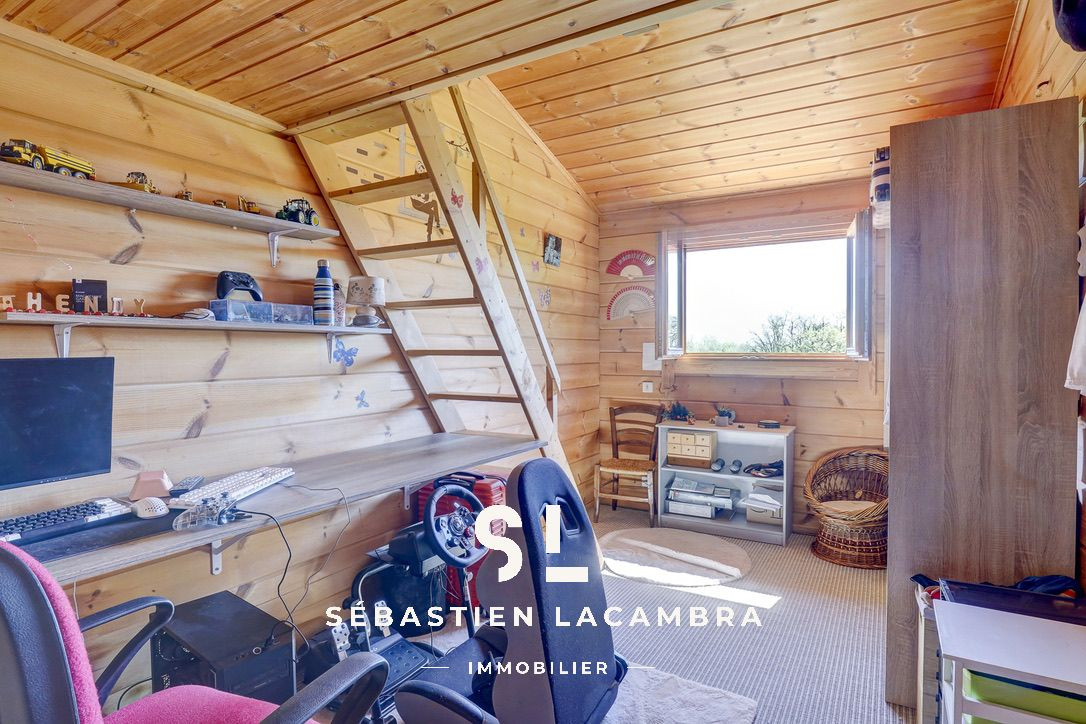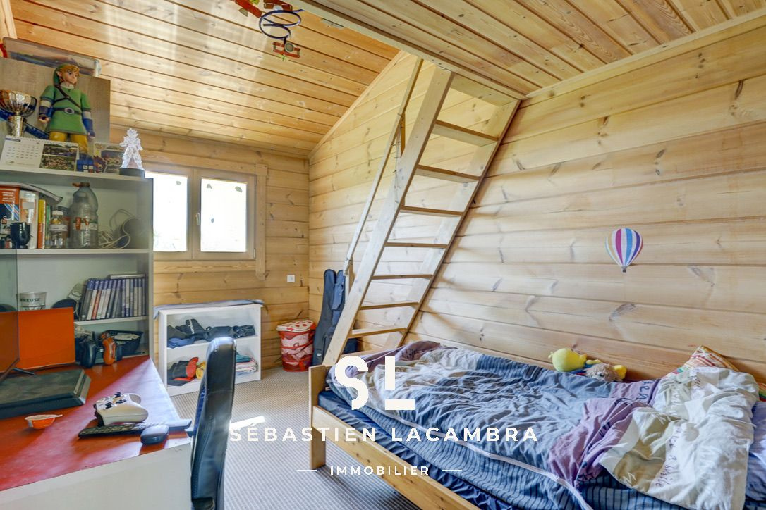 À l’étage, un palier pouvant accueillir un espace bureau dessert deux chambres ainsi qu’une salle d’eau avec douche. Trois chambres disposent d’une mezzanine, offrant des espaces complémentaires adaptables selon les besoins.