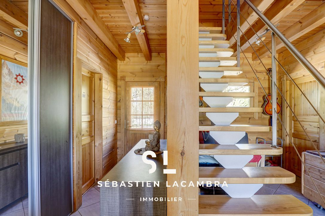 Elle développe environ 140 m² habitables et se distingue par sa construction en ossature bois de type canadien, offrant une atmosphère chaleureuse et une bonne performance thermique.