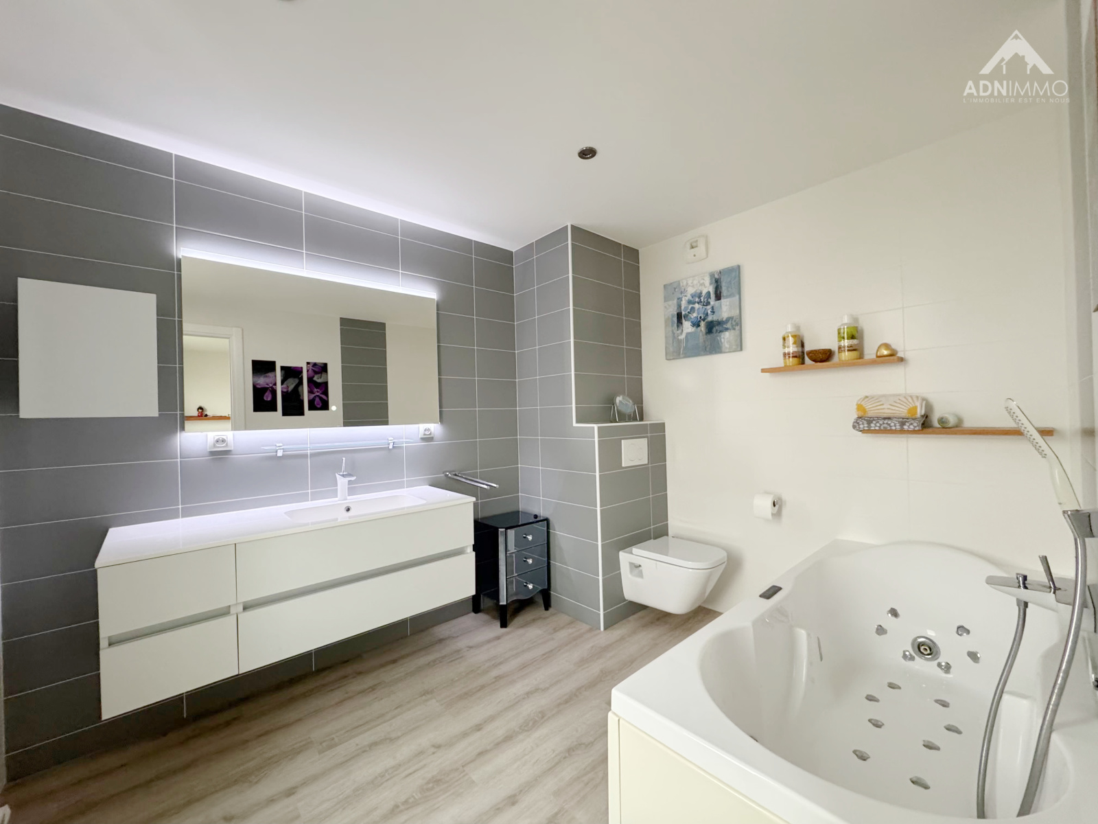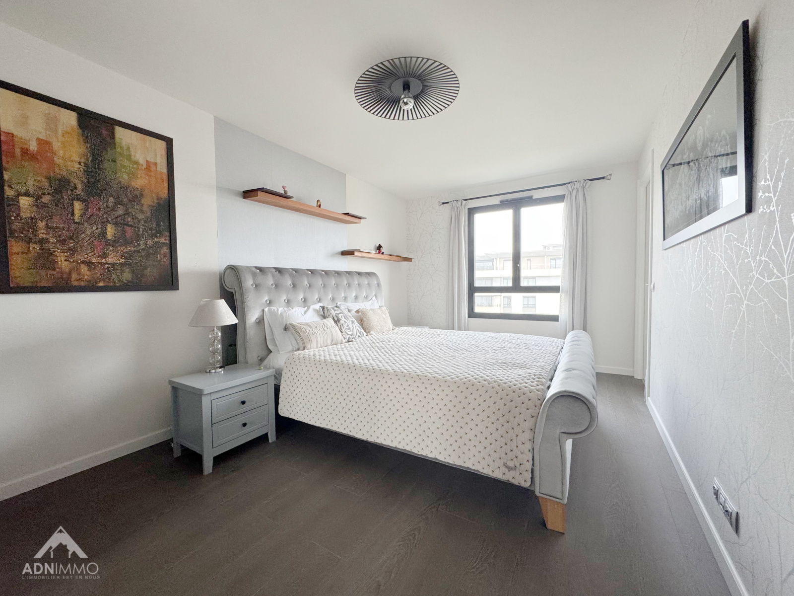 L'agence ADN IMMO vous propose en exclusivité ce magnifique appartement de 166 m2 sur la commune de Saint-Genis Pouilly, au sein du parc Jean Monnet. Situé au 5eme étage, il comprend un vaste espace de vie lumineux incluant une cuisine ouverte intégralement équipée, 4 chambres spacieuses dont une suite parentale, 1 salle de bain, 2 salles de douche et 4 WC. En complément, une grande terrasse exposée plein sud avec vue dégagée et un double garage motorisé.