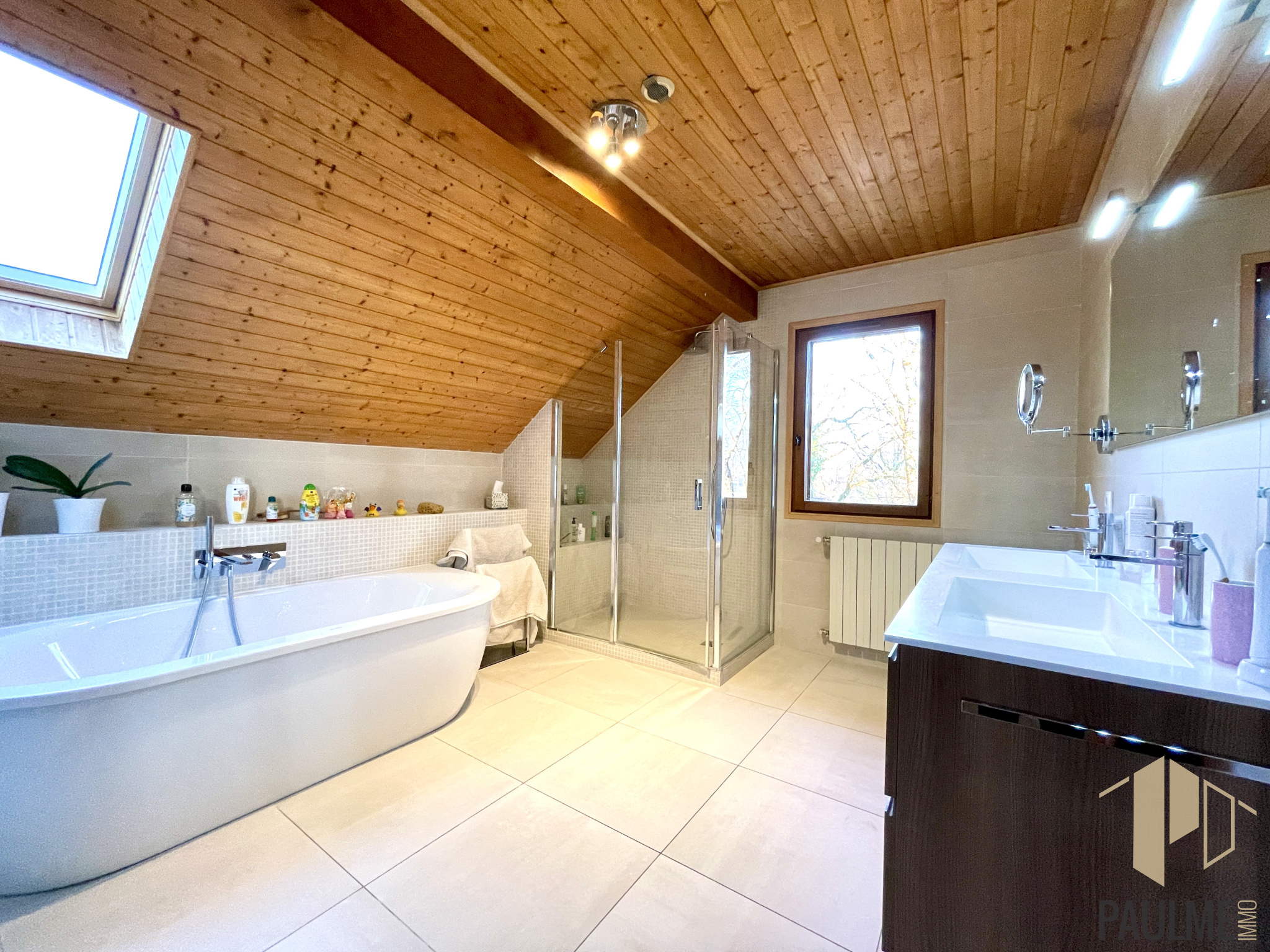 D'une surface habitable d'environ 170m², l'intérieur est constitué d'une cuisine entièrement équipée, d'un vaste salon salle à manger avec poêle à bois et accès à la terrasse, de 4 belles chambres, d'une salle d'eau / WC, d'une grande salle de bains avec douche et baignoire rénovée.