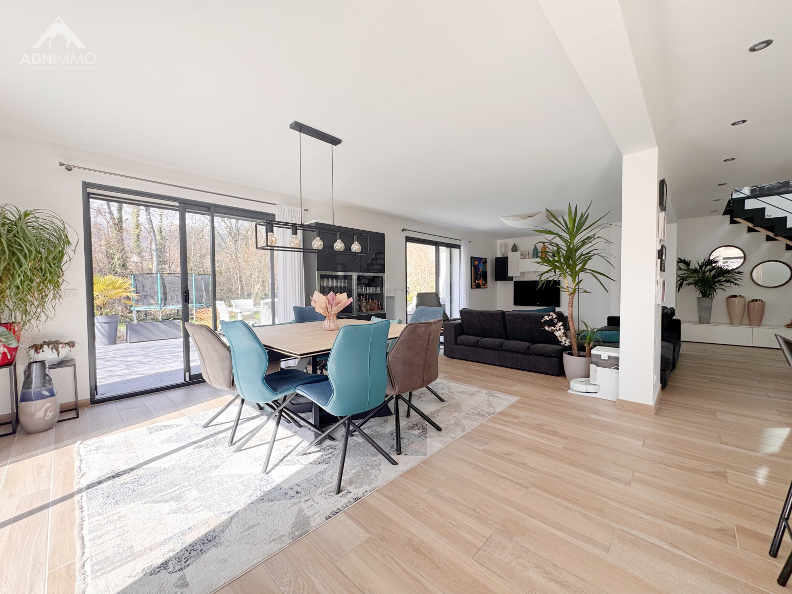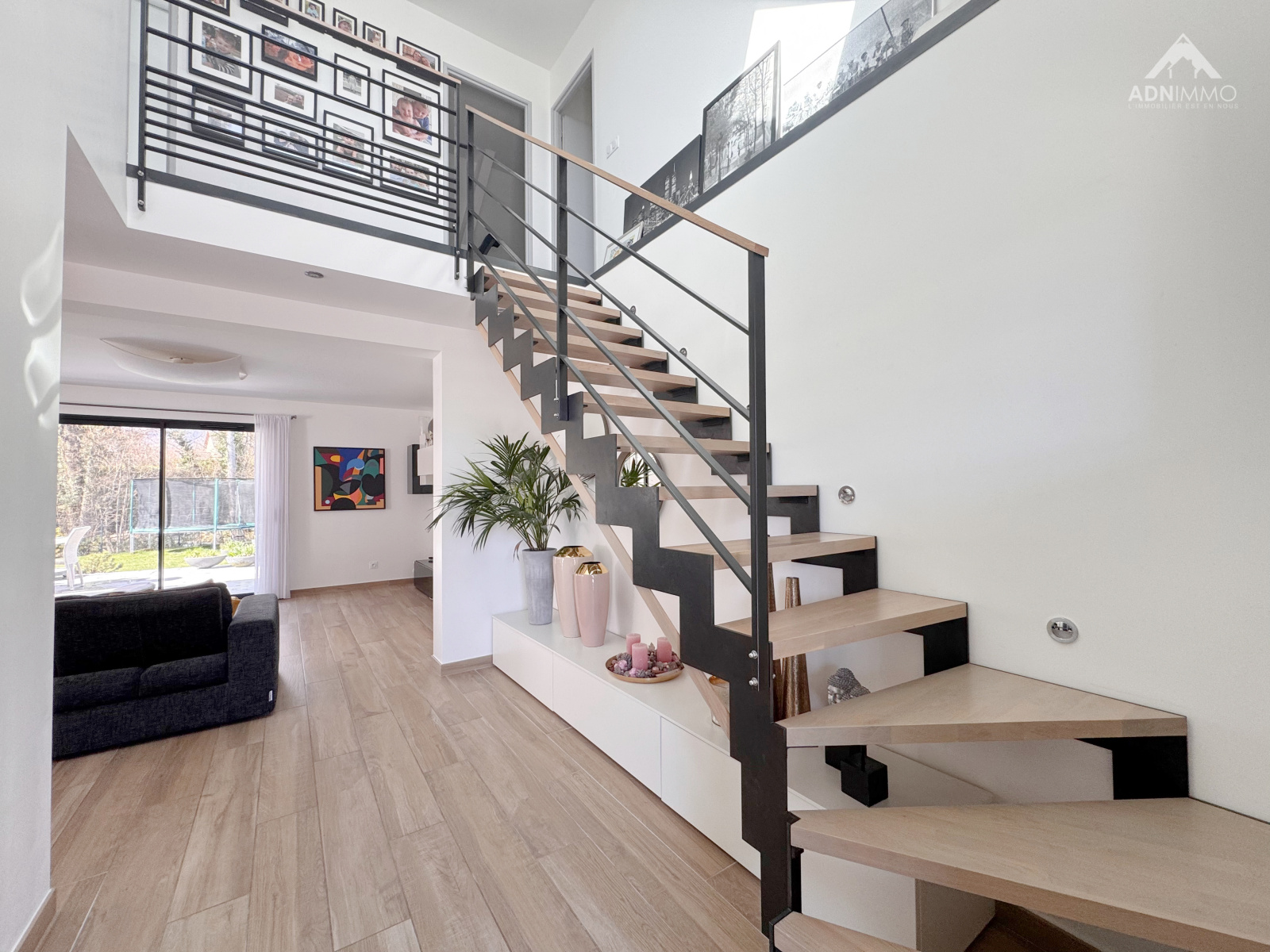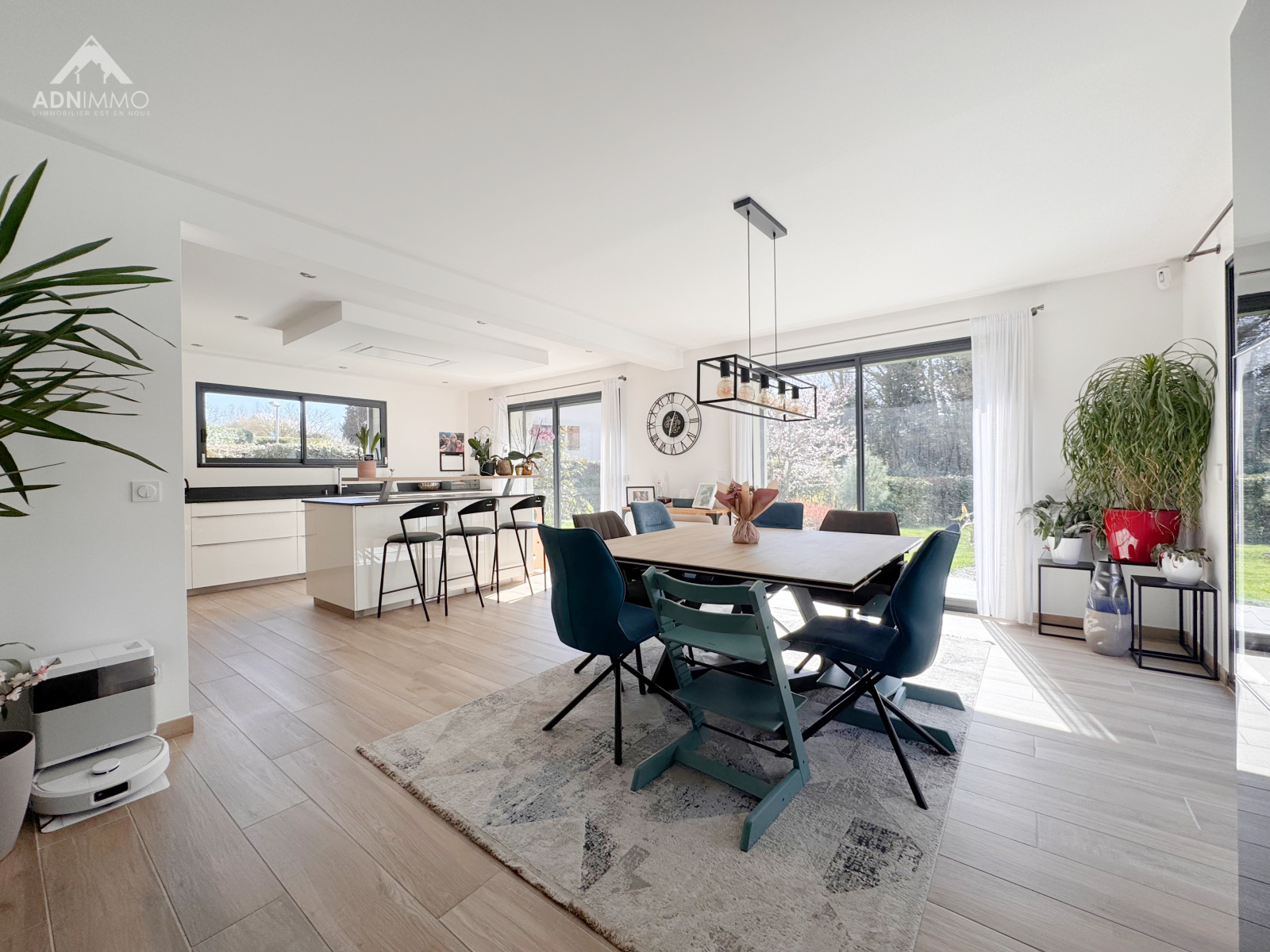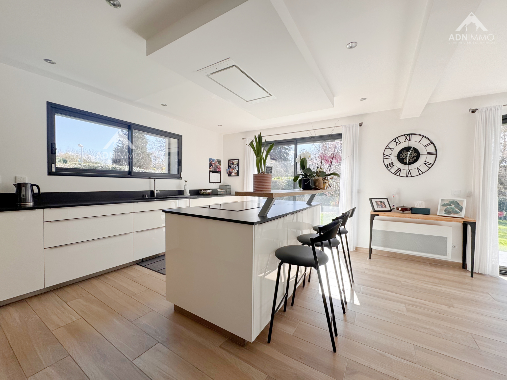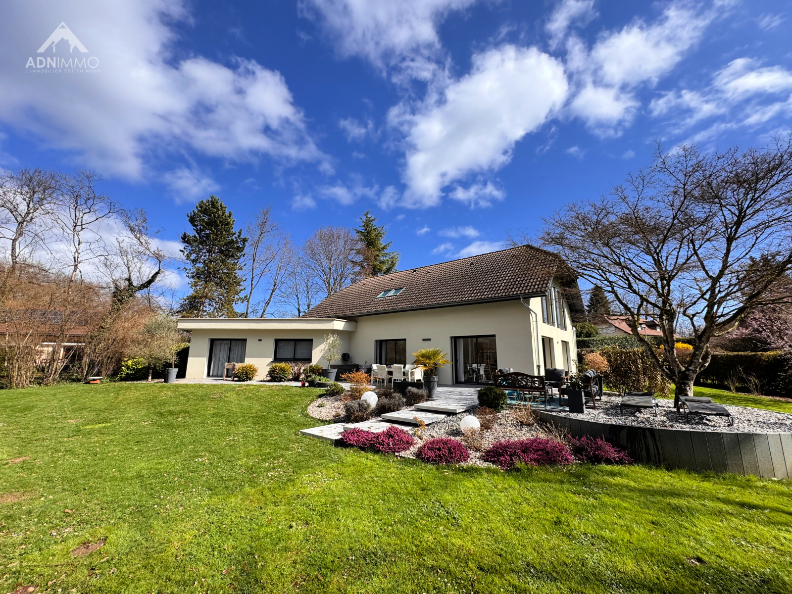 L'agence ADN Immo vous propose cette magnifique maison individuelle de 216 m2 (193 m2 habitable) sur la commune de Saint Genis Pouilly. Construite sur une parcelle de 1566 m2, elle comprend un vaste espace de vie lumineux incluant une cuisine ouverte intégralement équipée, 5 chambres spacieuses dont une suite parentale, 1 salle de bain, 2 salles de douche et 4 WC. En complément, une grande terrasse exposée sud ouest, un jardin paysagé et un garage.