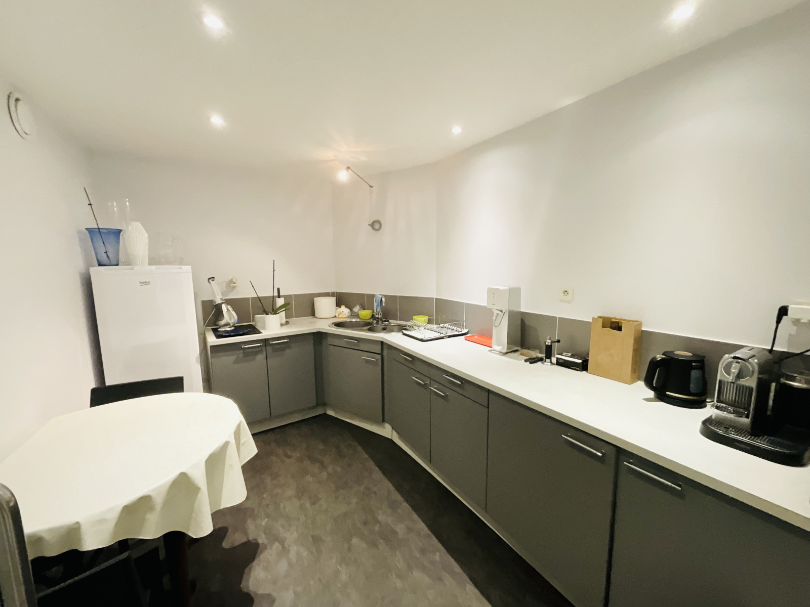 - Le rez-de-chaussée accueille un vaste local commercial en 2 parties, un bureau, une cuisine, wc, une pièce technique ...etc