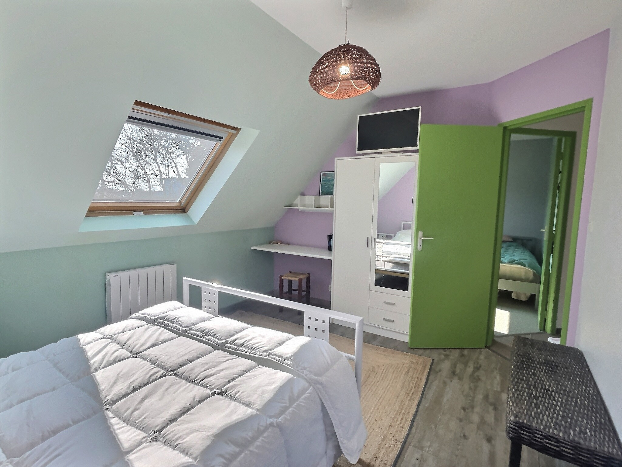 Un espace dans les rampants, au-dessus du garage, offre un potentiel intéressant pour la création d’un bureau ou d’un espace supplémentaire.