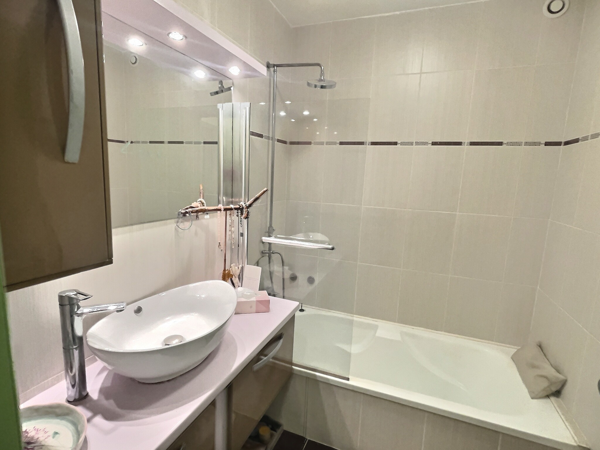 Le rez-de-chaussée offre un espace nuit intelligemment conçu, comprenant une chambre, une salle d’eau avec baignoire, un placard et des WC indépendants.