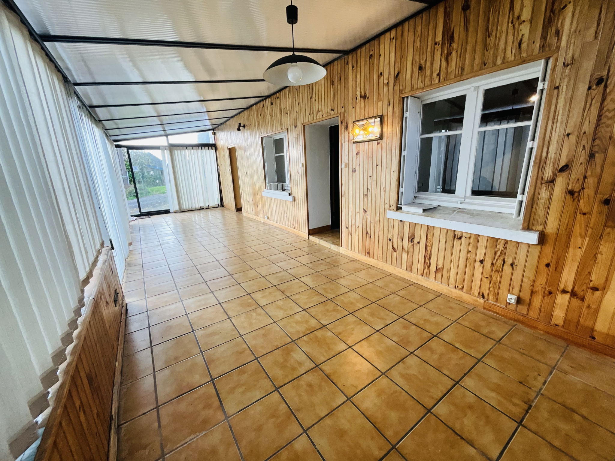 Dès l’entrée, une véranda baignée de lumière vous accueille et invite à la détente en toute saison. Elle dessert un agréable salon-séjour avec coin cuisine, offrant un espace de vie convivial. Une première chambre, ouverte sur la véranda, prolonge cette atmosphère lumineuse et apaisante.