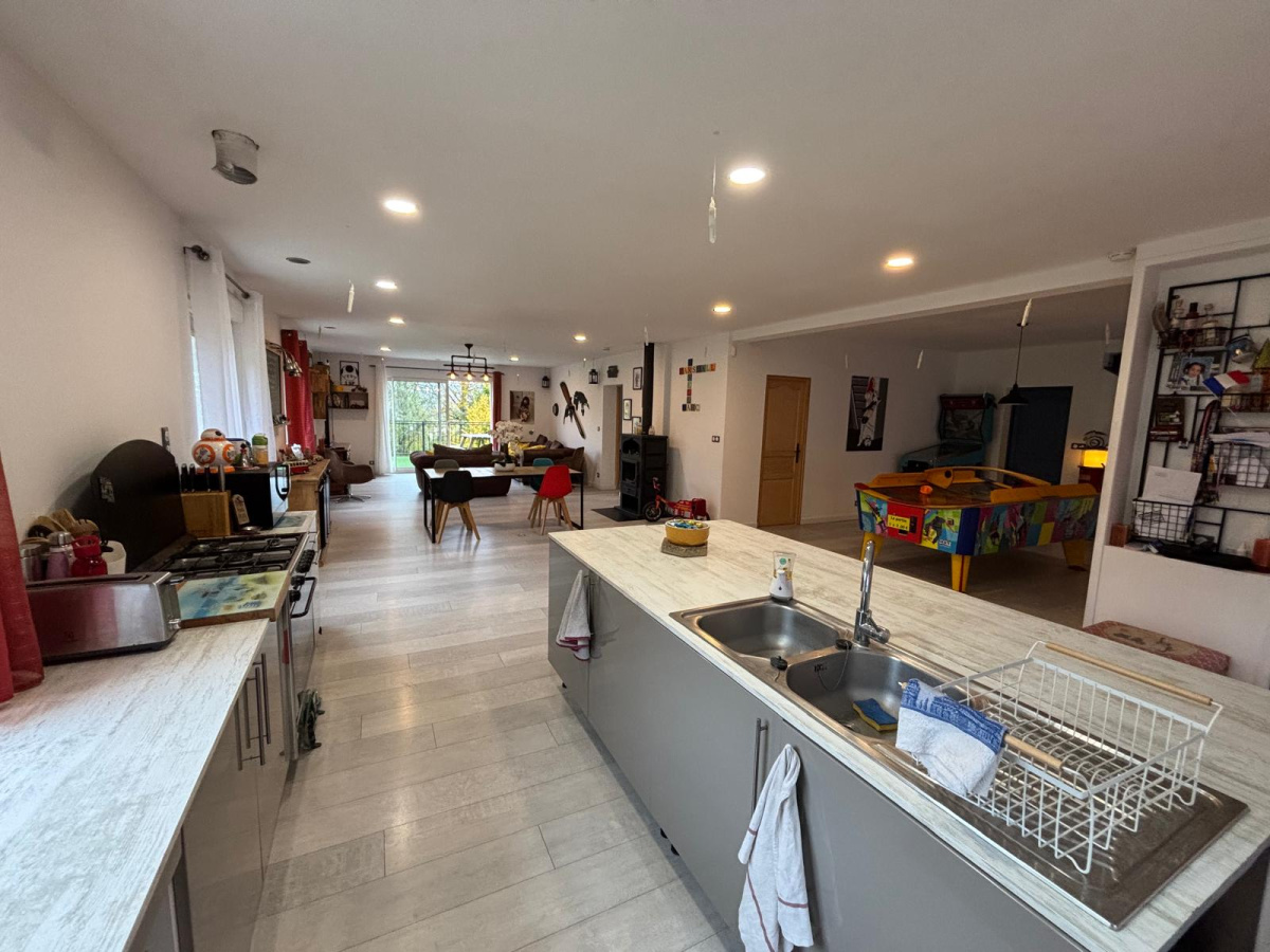Venez apprécier les volumes généreux de cette maison récente, offrant un séjour avec cuisine ouverte de 100 m², ainsi qu’une suite parentale de 40 m² comprenant une salle de bains et un dressing.