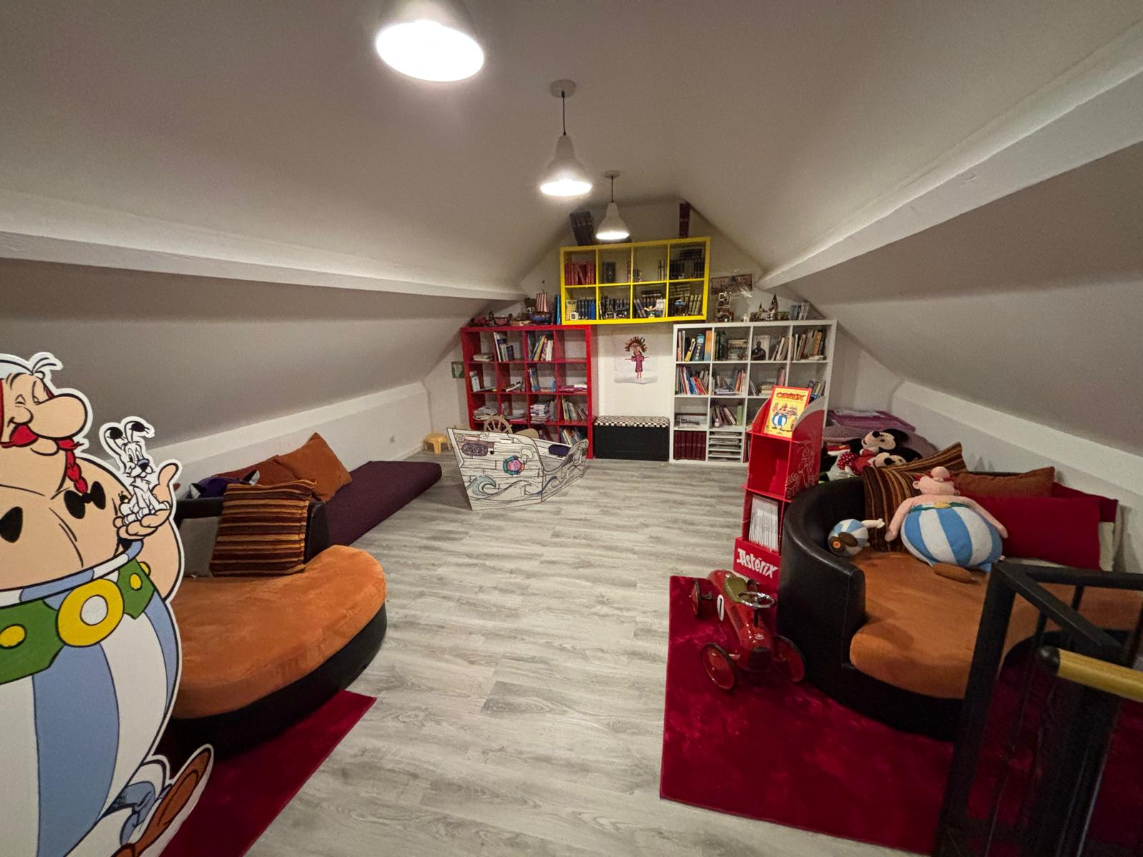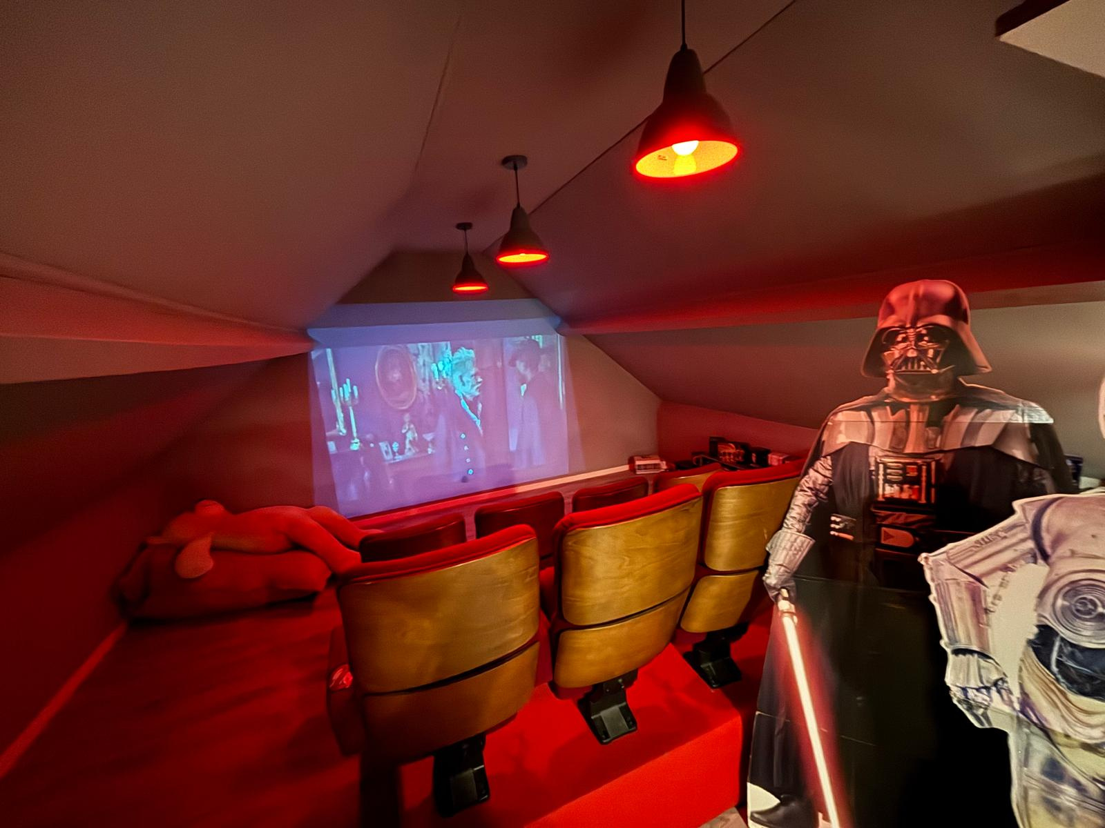 À l’étage dédié aux enfants, vous retrouverez trois grandes chambres, une salle de bains, ainsi qu’une salle de jeux. Enfin, au dernier étage, une bibliothèque et une salle de cinéma raviront petits et grands.