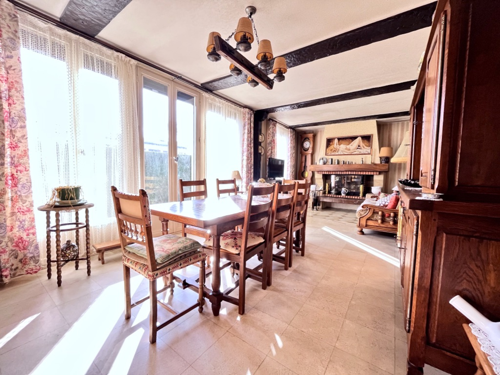 - D'un sas d'entrée donnant accès à une cuisine aménagée, une belle pièce de vie lumineuse avec ses grandes baies vitrées et sa cheminée.