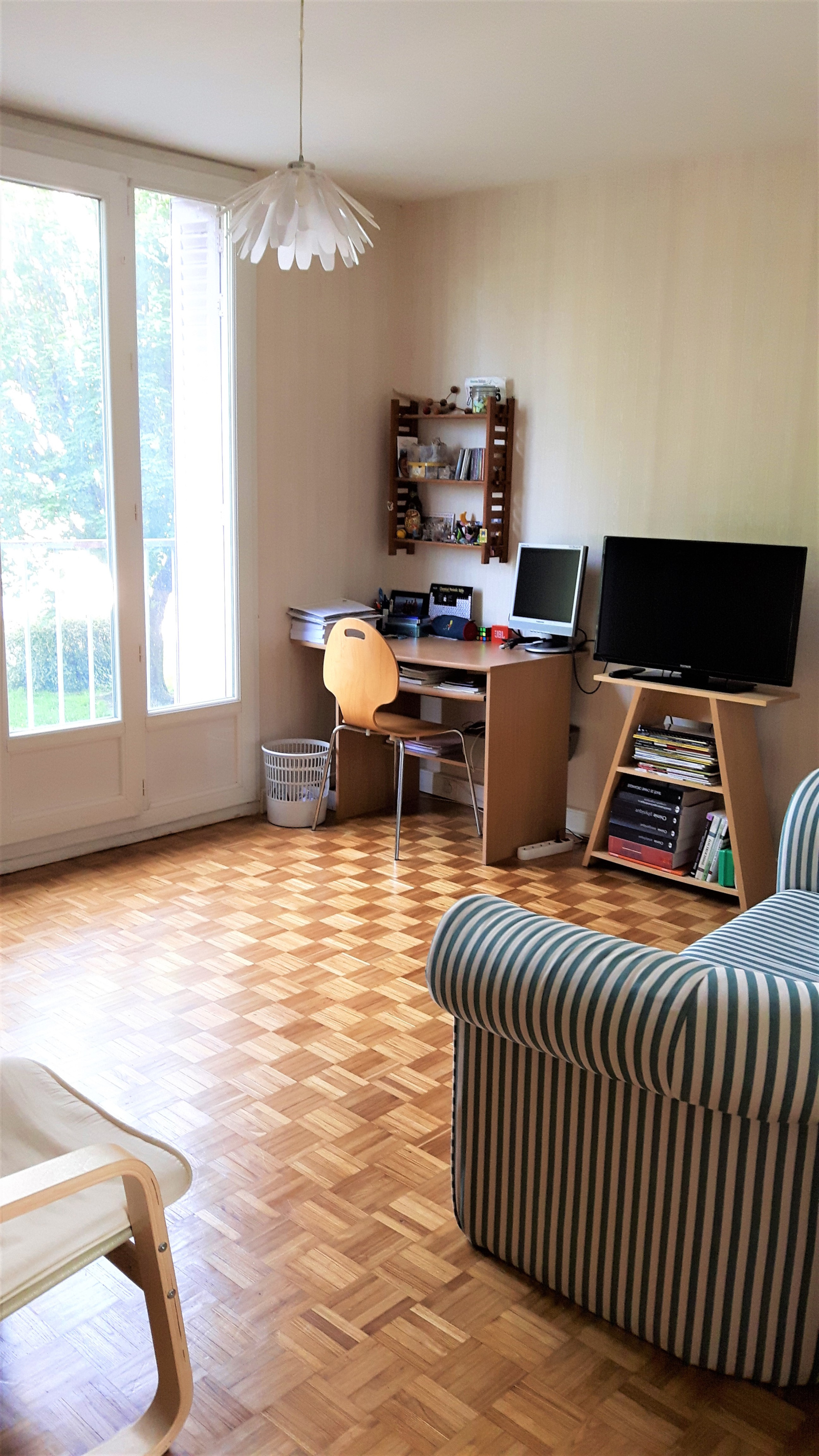 La cuisine équipée ainsi que la loggia ont été repeintes, les huisseries double vitrage changées il y a quelques années, la salle d’eau a été refaite également.