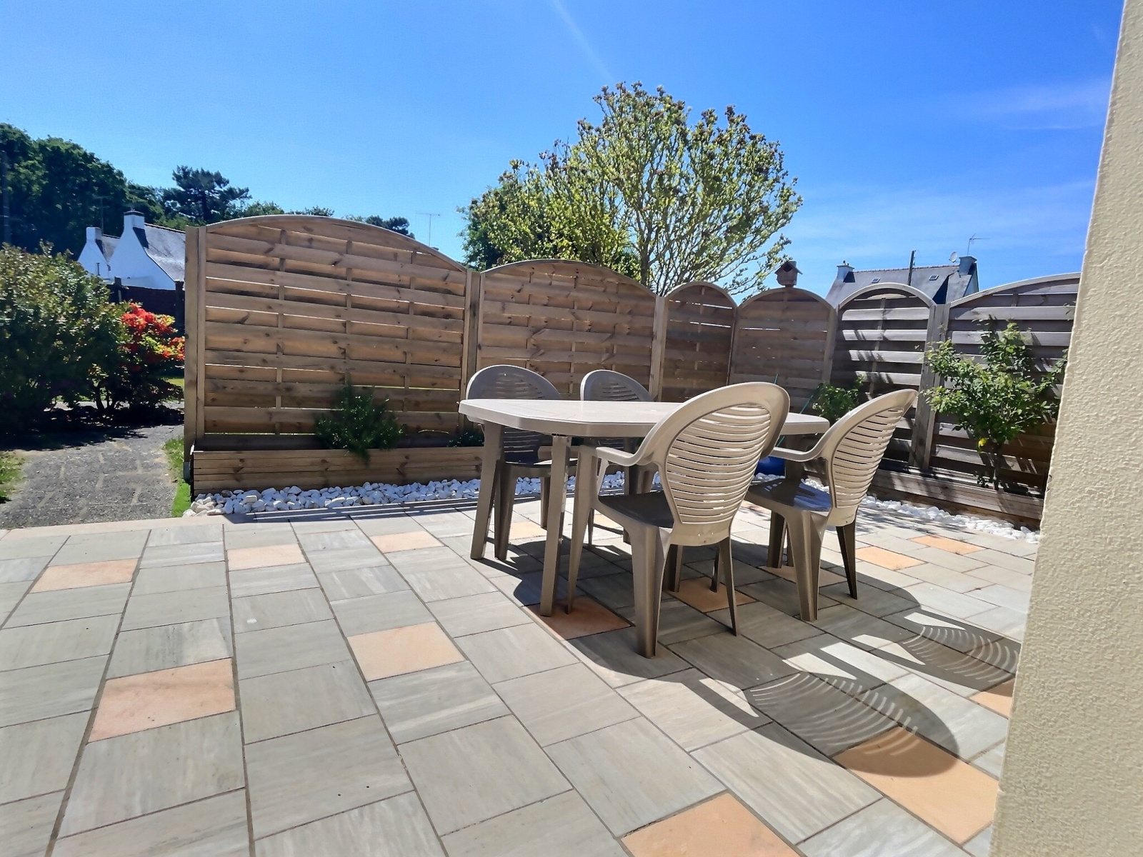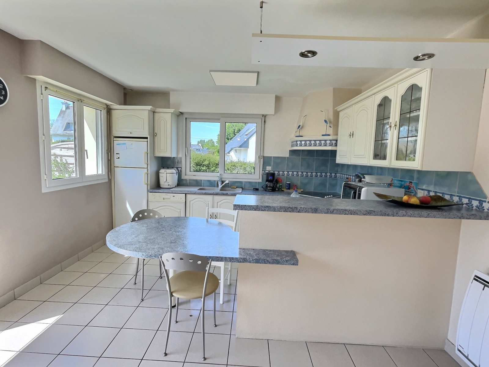 Située à 1800m en vélo, à pieds … de POULDOHAN avec sa jolie plage et son petit port, 2000m du bourg de Trégunc avec ses commerces et écoles, cette maison construite en 1990 dispose d’un terrain de 1065 m2 totalement clos fermé par un portail.
