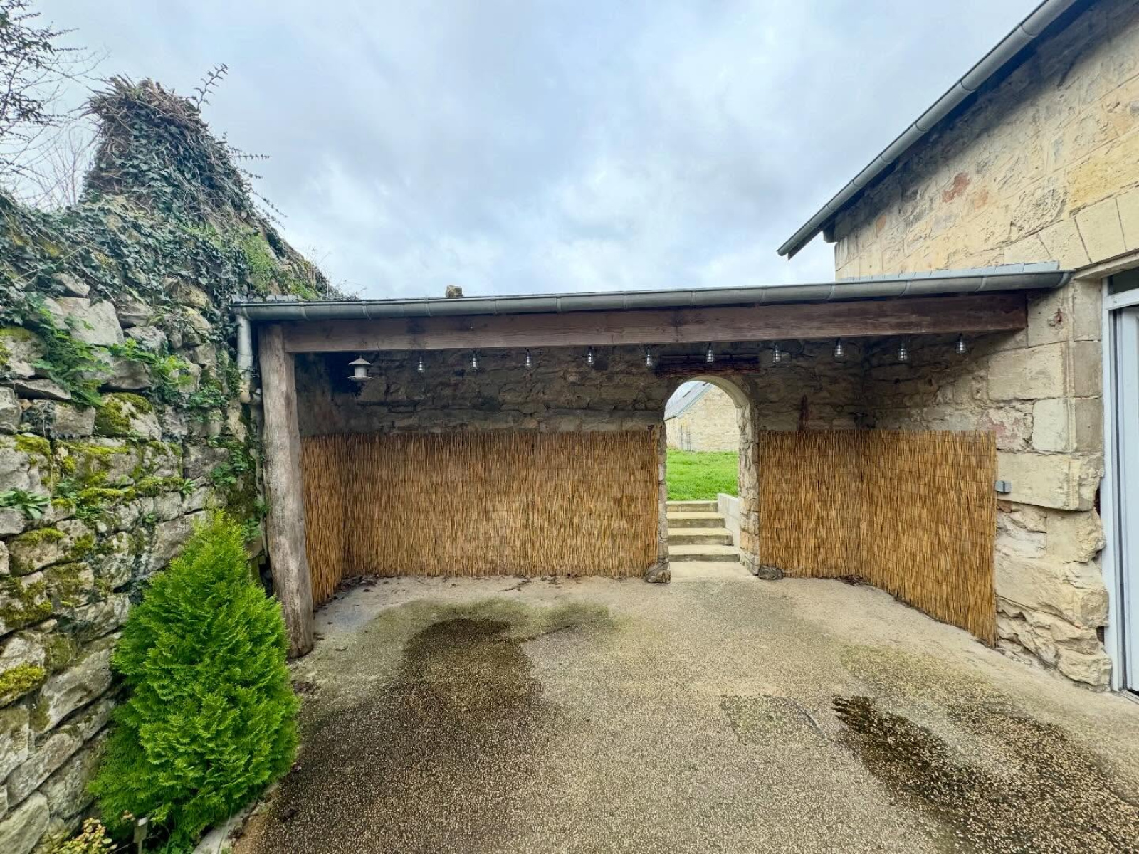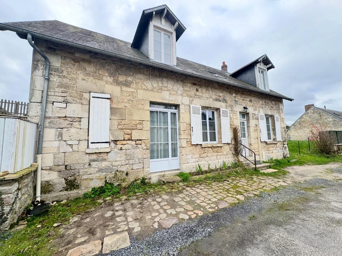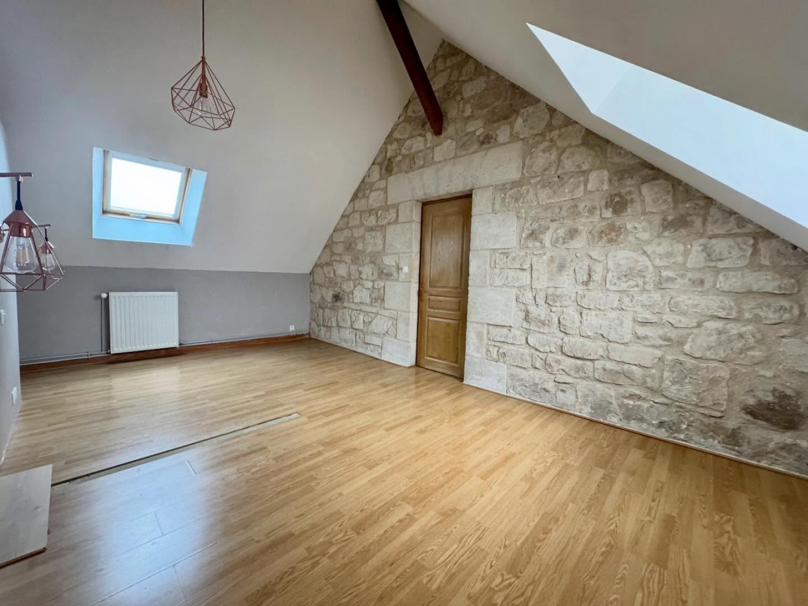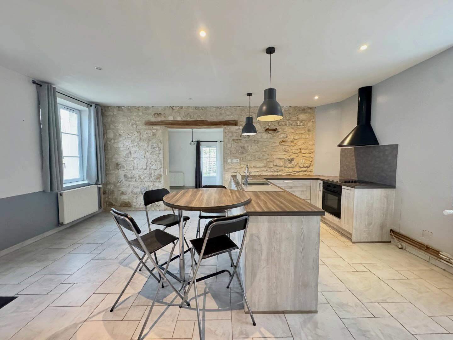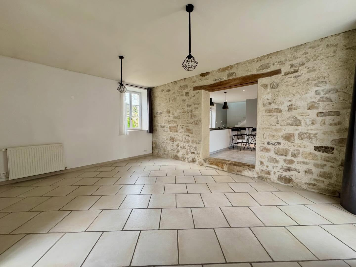 Beaucoup de cachet avec pierres apparentes et poutres. Jardin et cave. Maison sans travaux, on pose les valises.