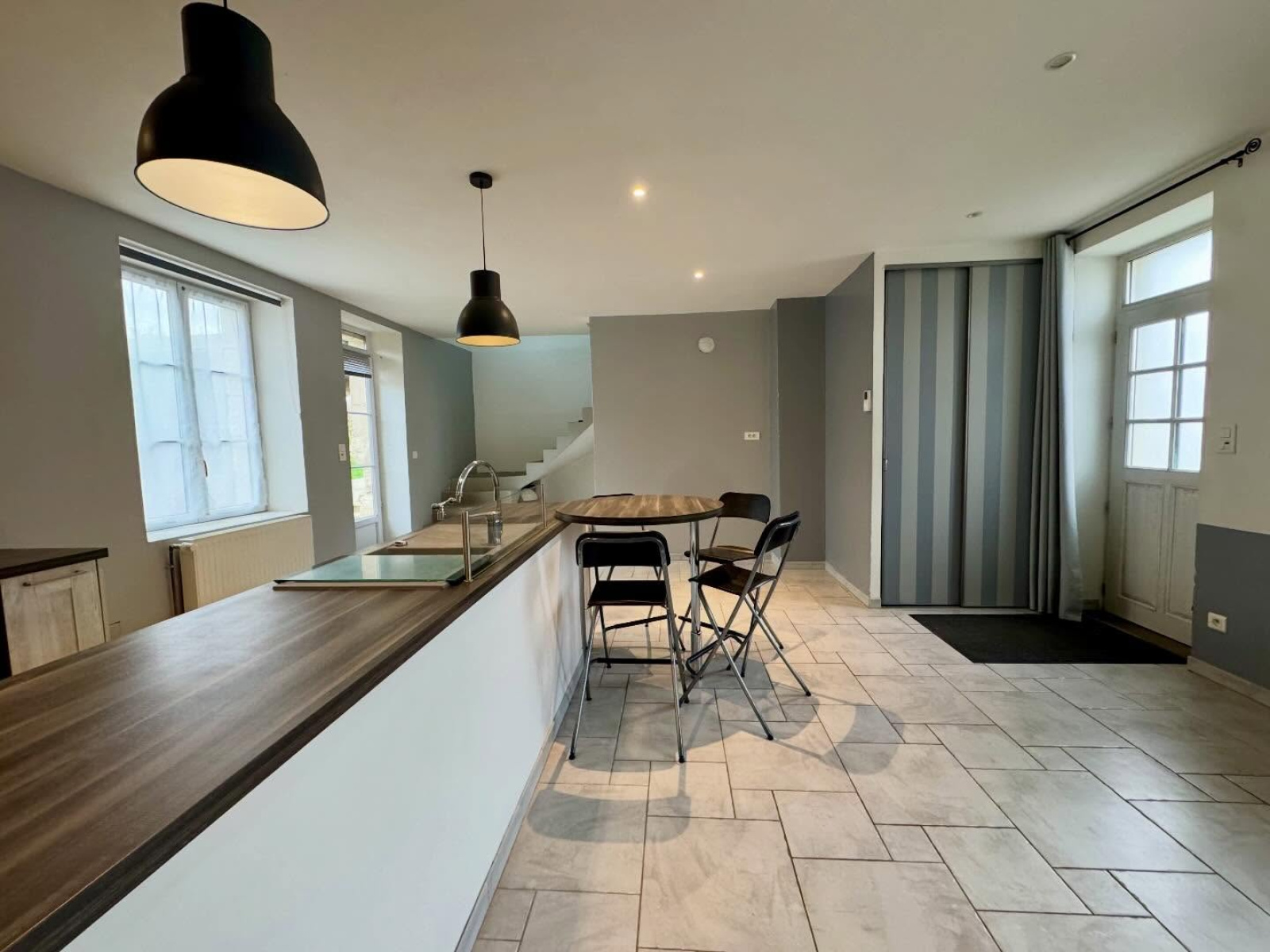 Elle se compose d’une grande pièce de vie lumineuse avec cuisine aménagée et équipée, de trois chambres, d’une salle de douche avec WC, d’un WC séparé et d’un grand palier pouvant servir de bureau ou espace télétravail.