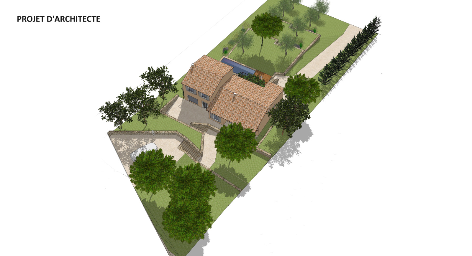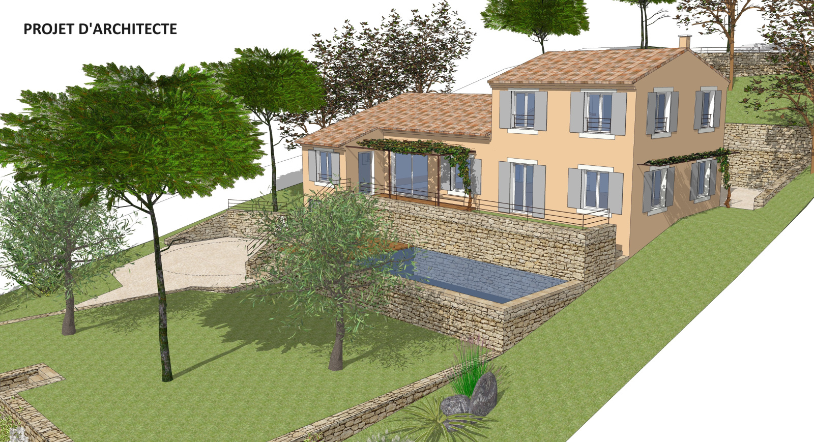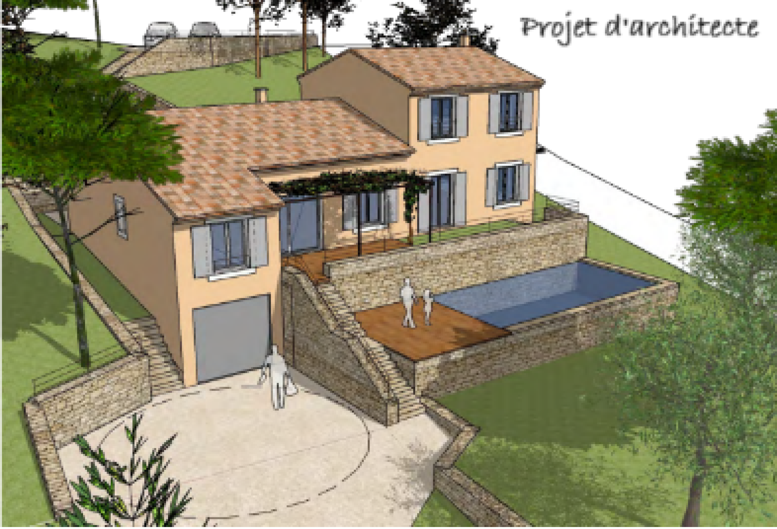 -Terrain en pente (restanques), et naturellement arboré (Pins).