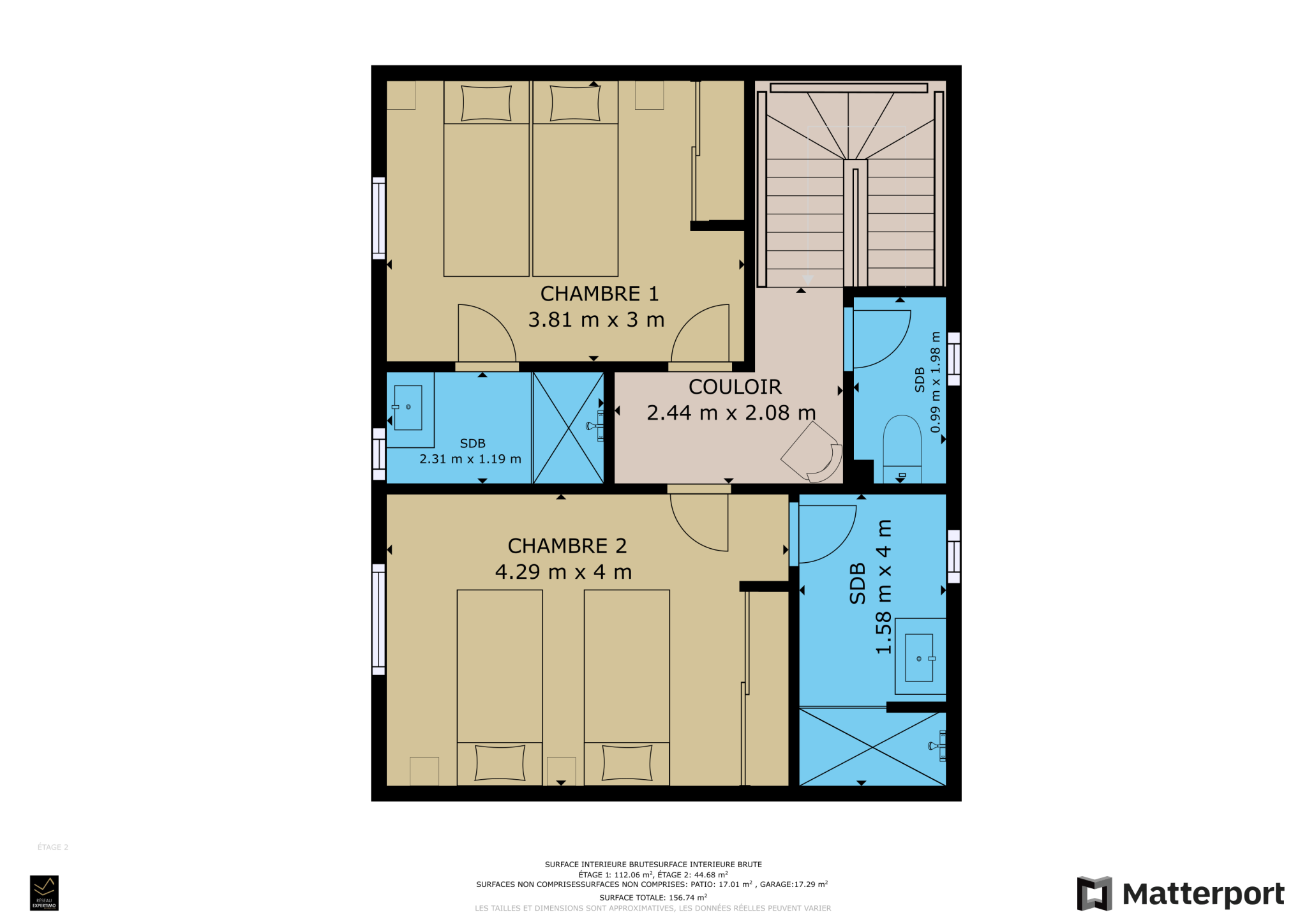 - 2 salles de bain + 2 salles d’eau