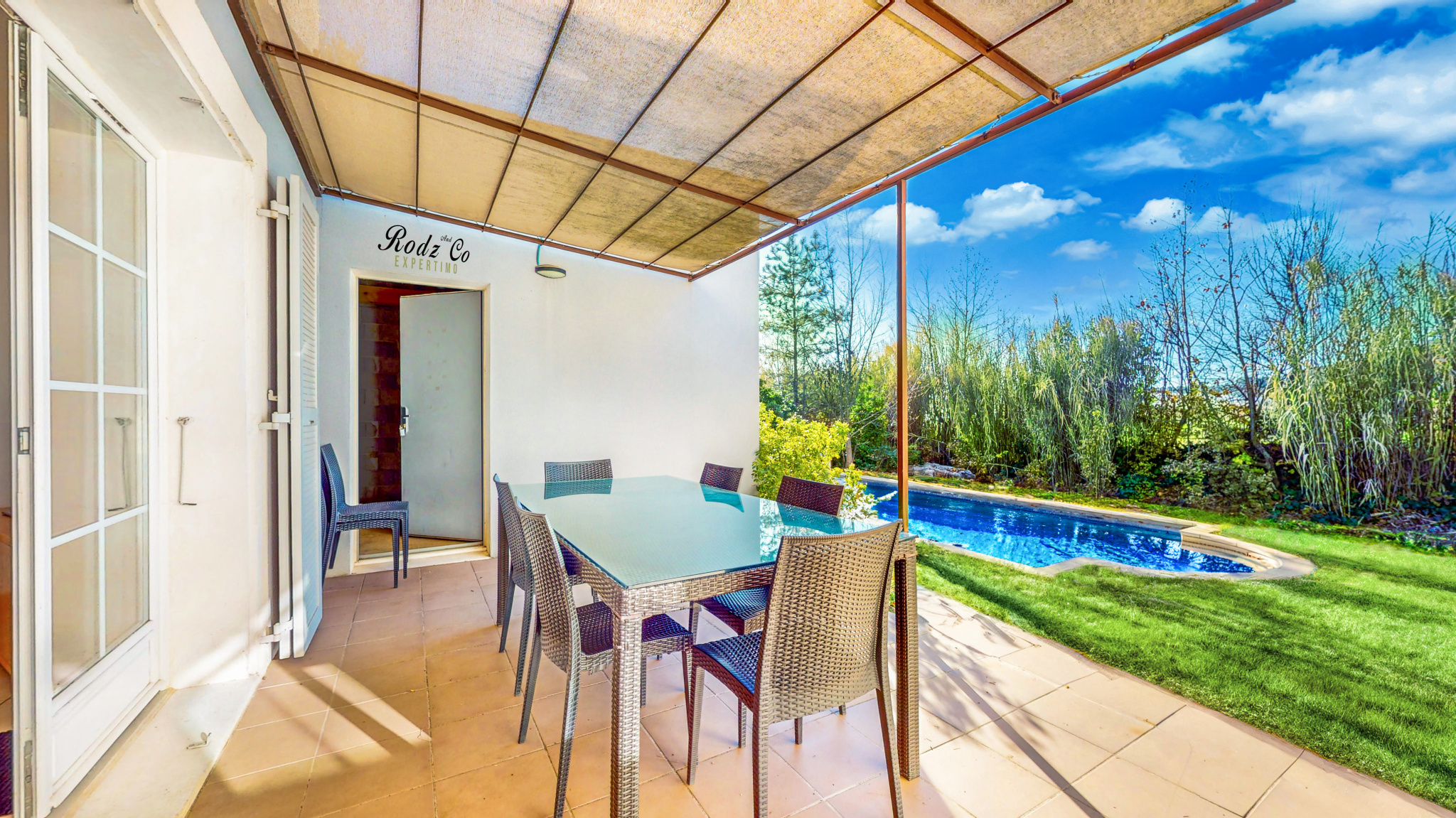 Accès vers jardin, salon et garage