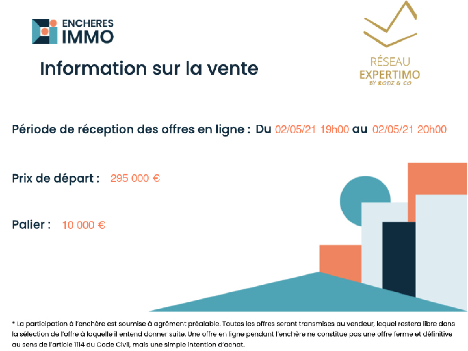 Ce bien est à vendre en enchère interactive réalisée par ENCHERES IMMO. La participation à l'enchère est soumise à agrément préalable. Toutes les offres seront transmises au vendeur, lequel restera libre dans la sélection de l'offre à laquelle il entend donner suite. Une offre en ligne pendant l'enchère ne constitue pas une offre ferme et définitive au sens de l'article 1114 du Code Civil, mais une simple intention d'achat.