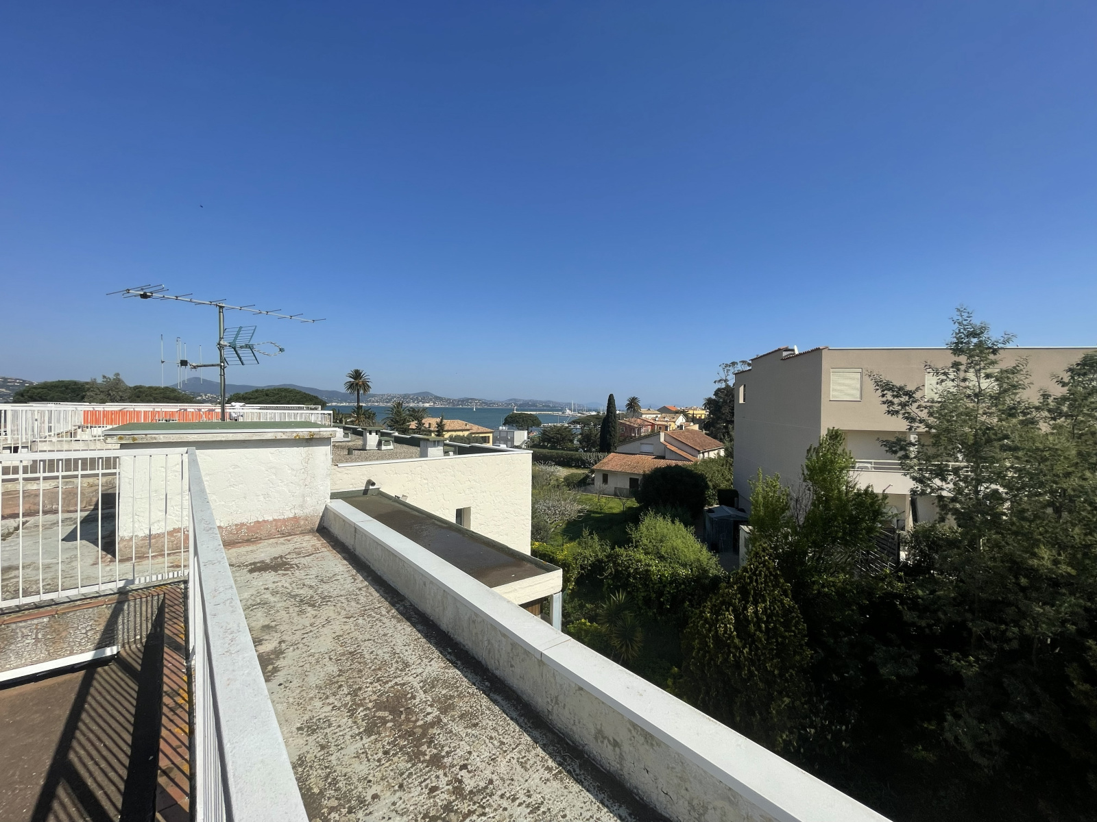 A Saint-Tropez, découvrez ce rare appartement T2 de 35 m2 situé au dernier étage d'une résidence arborée, avec piscine et gardien. Vous profiterez d'une superbe terrasse de 20 m2 plein sud sans vis à vis et d'un solarium privatif de 40 m2 offrant une vue imprenable sur la mer et le village.