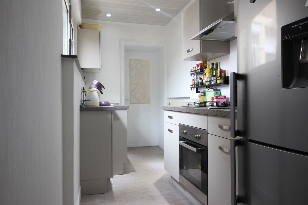au rez-de-chaussée : un vaste salon-séjour et une cuisine séparée, une salle de bains,