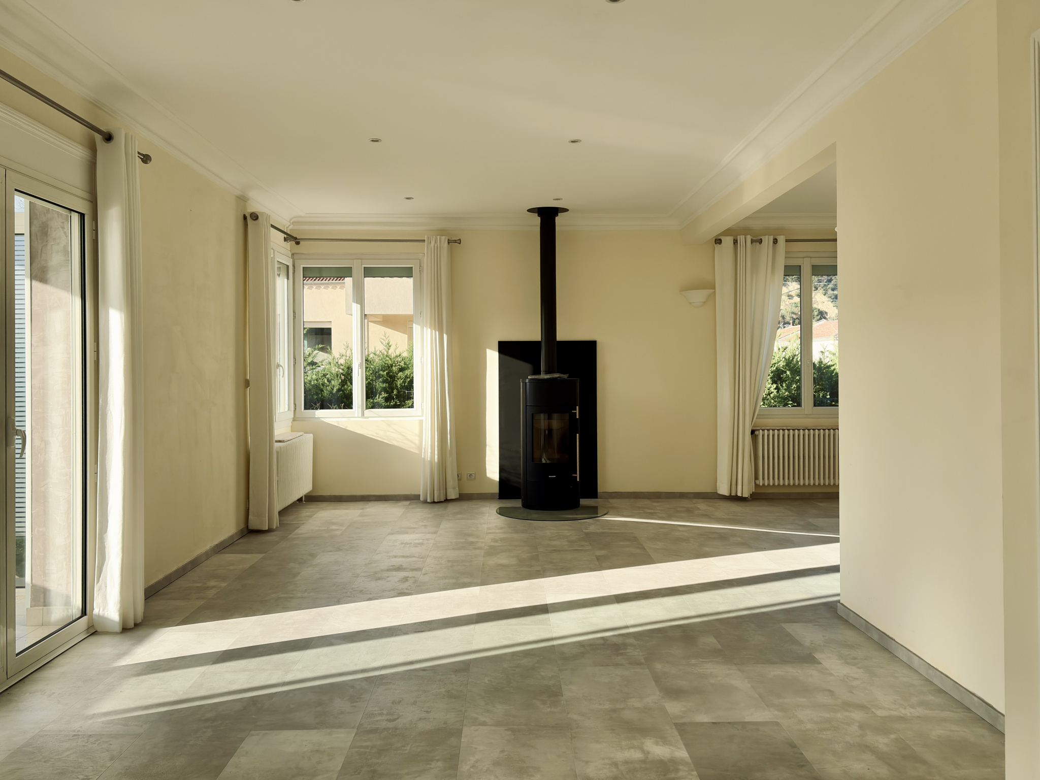 Le rez-de-chaussée comprend une cuisine équipée ouverte sur un espace salon donnant directement sur la pergola, deux chambres, un dressing fonctionnel, une buanderie, un WC, une salle de bain ainsi qu’une cave climatisée idéale pour les amateurs de vin. À l’étage, un vaste séjour de 50 m² avec poêle à bois propose une atmosphère chaleureuse et très lumineuse, accompagné d’une cuisine entièrement équipée et d’une véranda offrant une vue dégagée et un calme appréciable grâce à son exposition plein sud. Deux chambres supplémentaires, une salle d’eau et un WC complètent ce niveau.