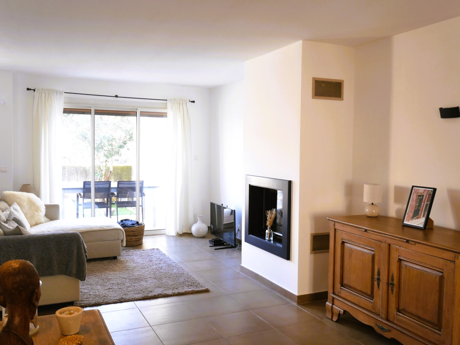 Au 1er étage un espace de vie de 52 m², traversant, donnant sur la terrasse et piscine, la cuisine est entièrement équipée, une cheminée avec insert pour vos soirées d'hiver et la climatisation rendent cette pièce très agréable à vivre.