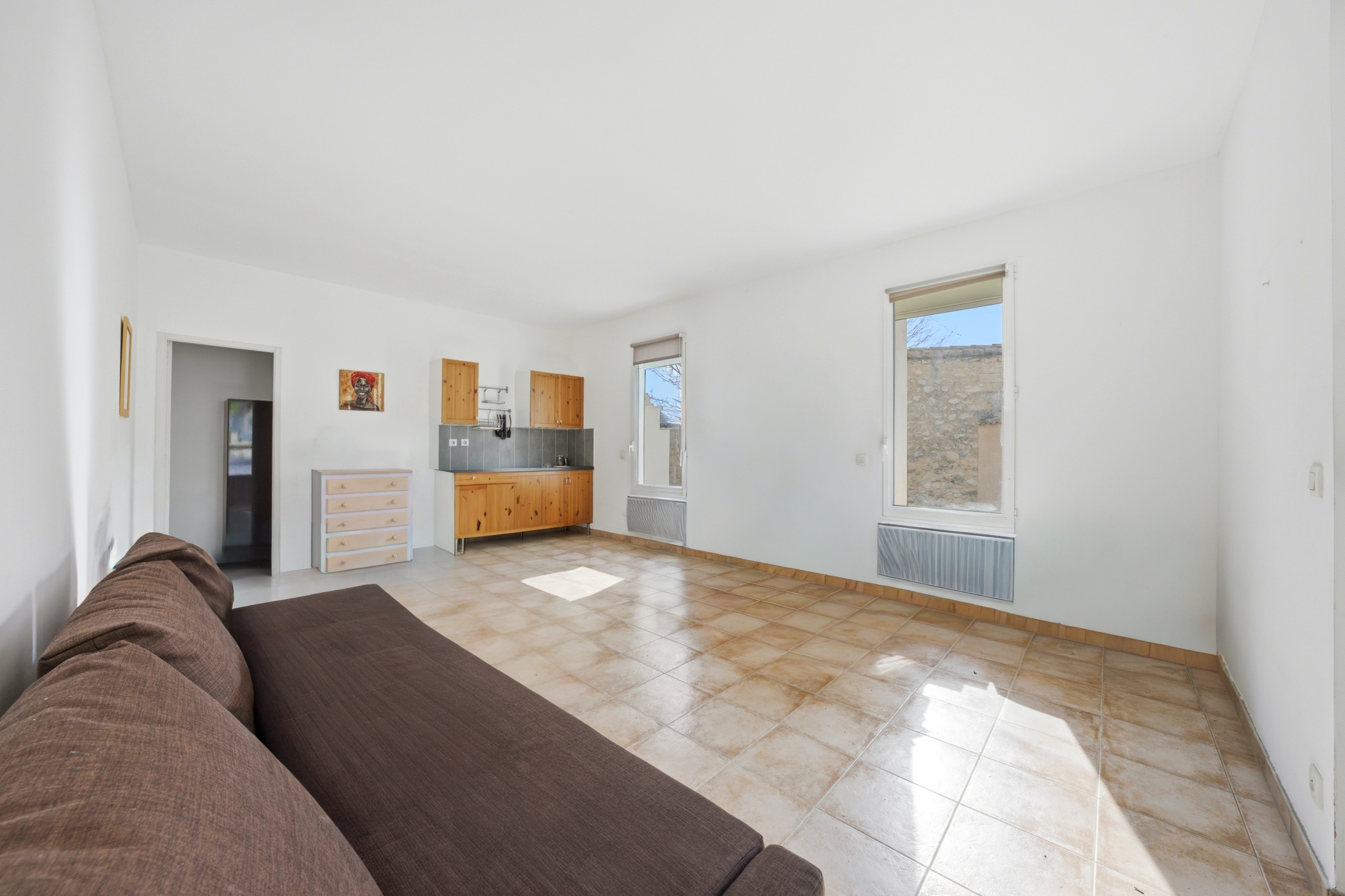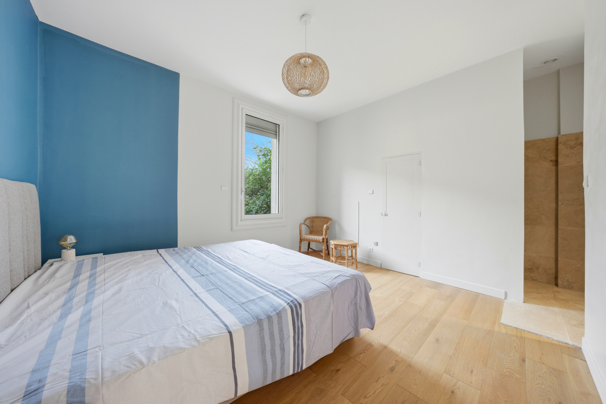 Au rez-de-chaussée, un grand studio entièrement indépendant peut être utilisé comme chambre supplémentaire, logement d’invités ou local professionnel.