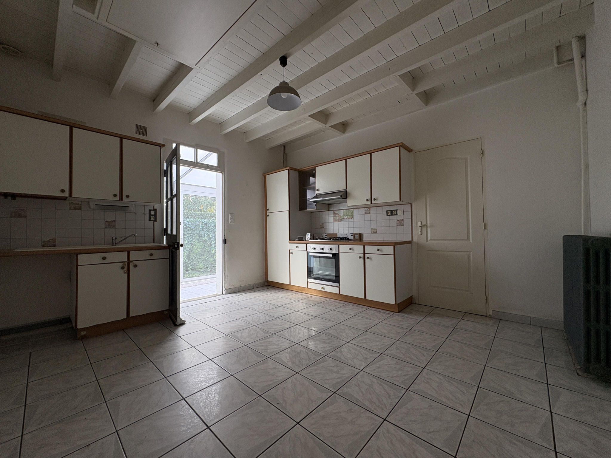 La cuisine indépendante, ouverte sur la véranda, offre un accès direct au jardin et à la terrasse.