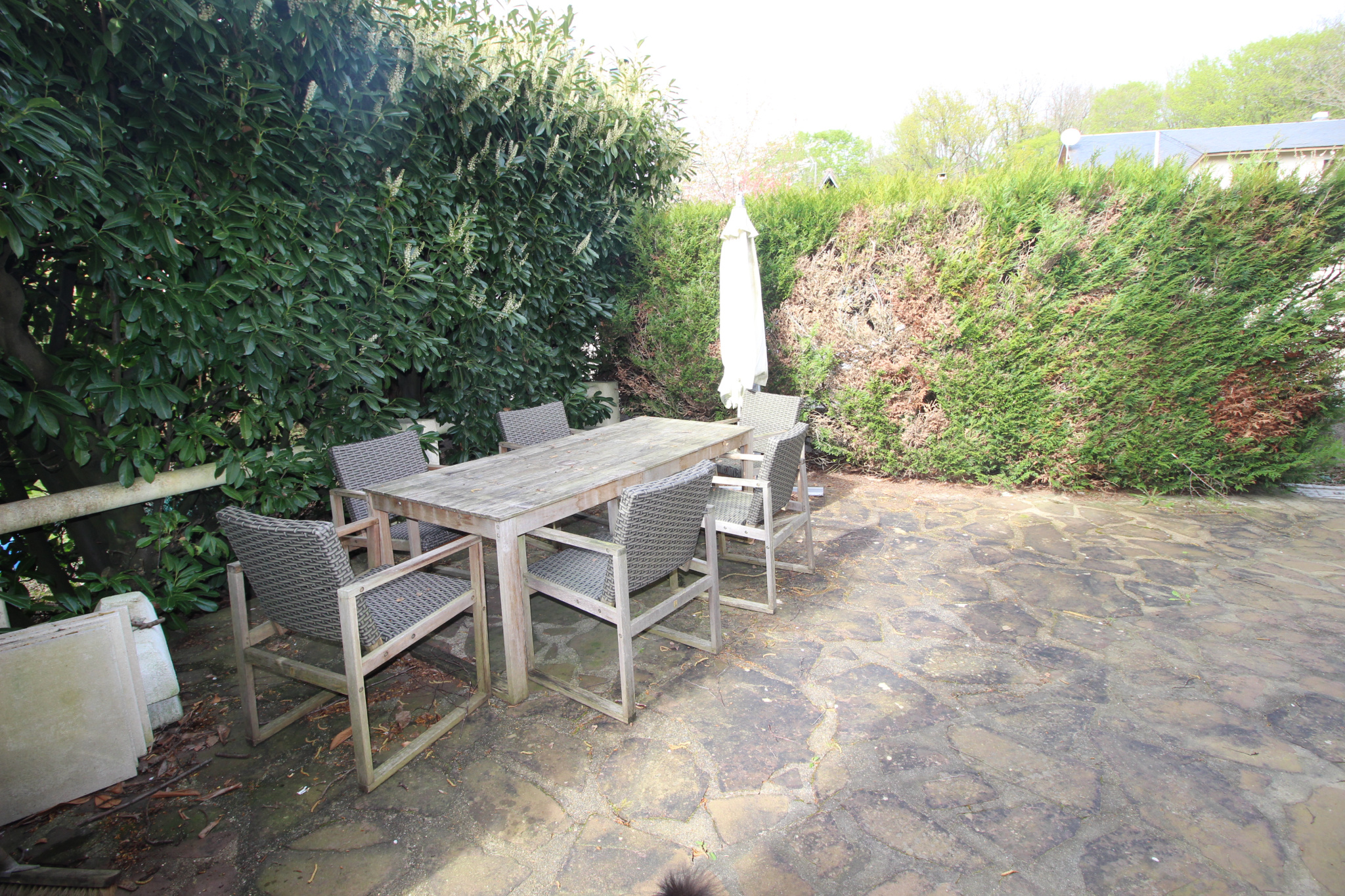 Un sous-sol partiel, une dépendance et un garage viennent enrichir l’ensemble, offrant des solutions de rangement et de stationnement appréciables.