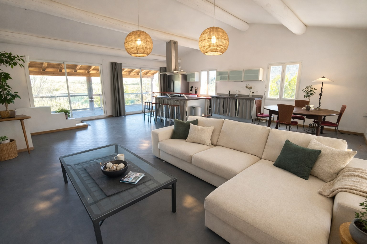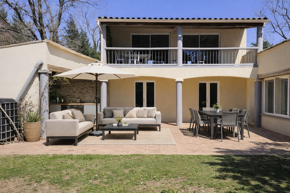 Dans un environnement privilégié, au cœur d’un secteur recherché de Vers, à proximité immédiate du Pont du Gard, cette villa atypique développe un potentiel rare sur le marché local.Sa pièce de vie principale d’environ 55 m², organisée en séjour cathédrale avec isolation en panneaux sandwich, offre des volumes remarquables et une luminosité omniprésente. Ouverte sur deux terrasses, au nord et au sud, elle permet de profiter pleinement des extérieurs à toute heure de la journée, avec en toile de fond une vue dégagée sur les vignes.