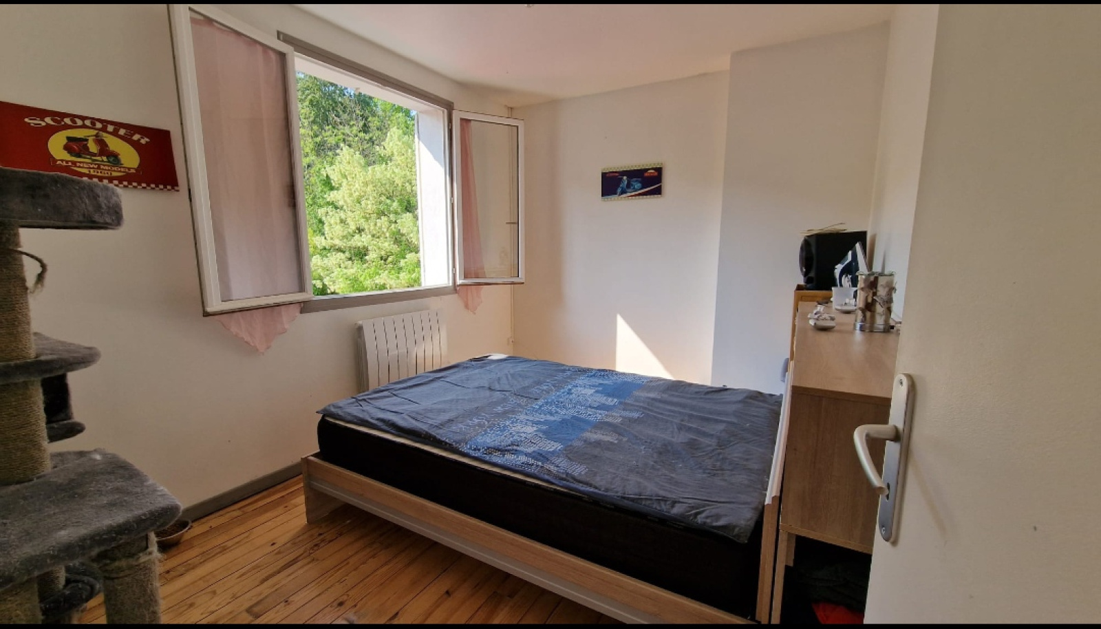 A l'étage, un couloir dessert 2 chambres et une salle de douche.