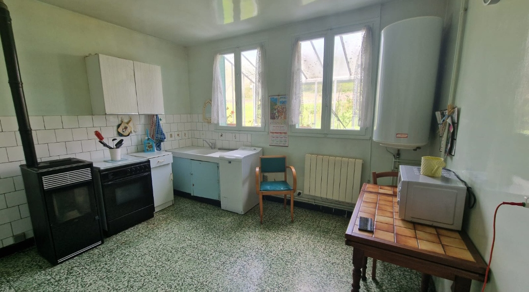 Elle vous offre; une veranda, une entrée, une cuisine, une pièce de vie avec cheminée, 3 chambres, une salle d'eau, un WC séparé et un grenier aménageable.
