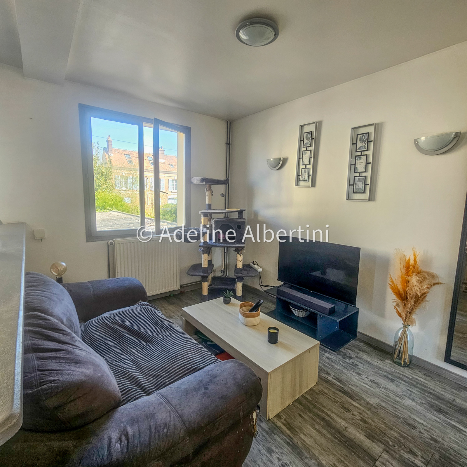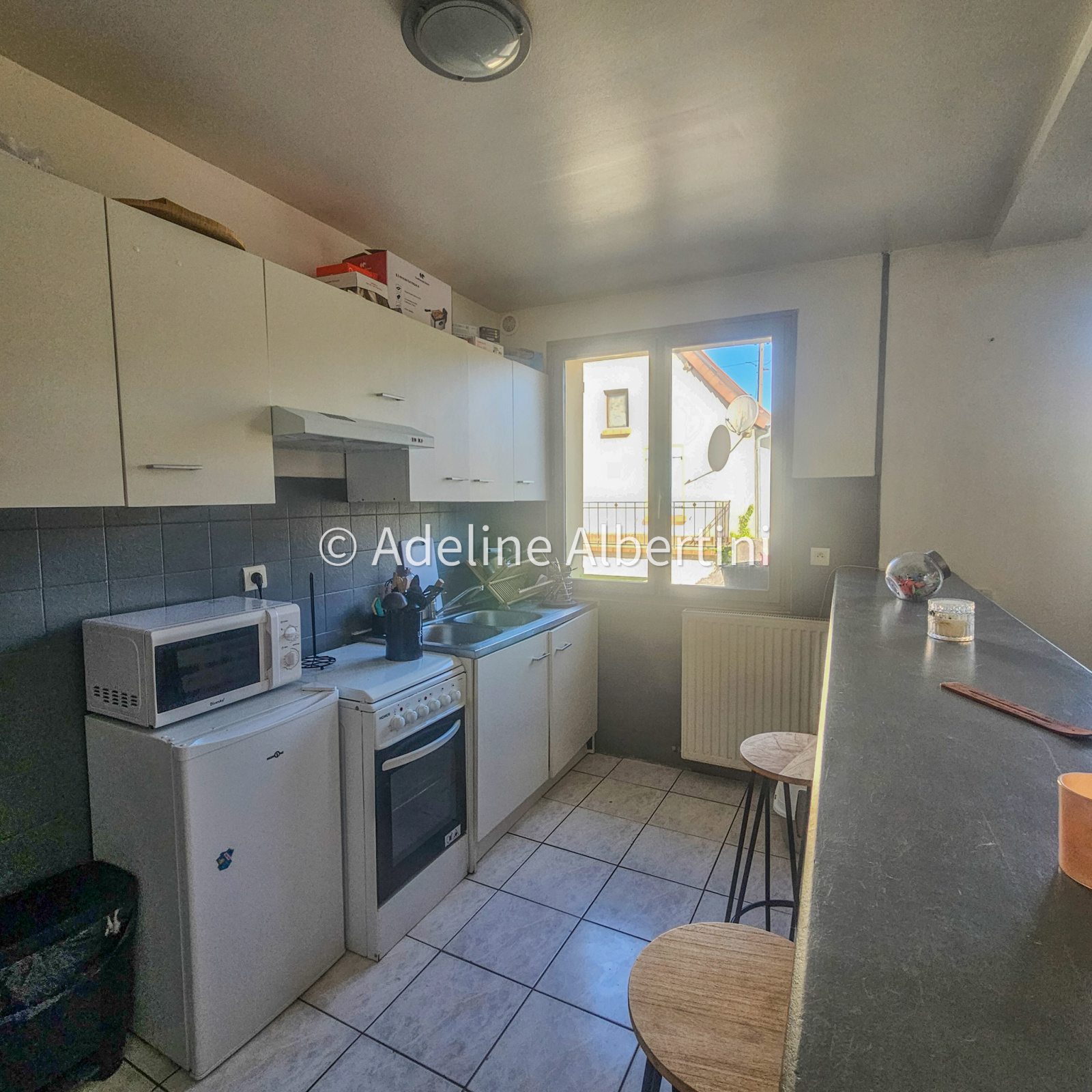 A l'étage côté droit de l'immeuble se trouve un appartement deux pièces composé d'un séjour avec cuisine ouverte , une chambre , une salle d'eau avec wc