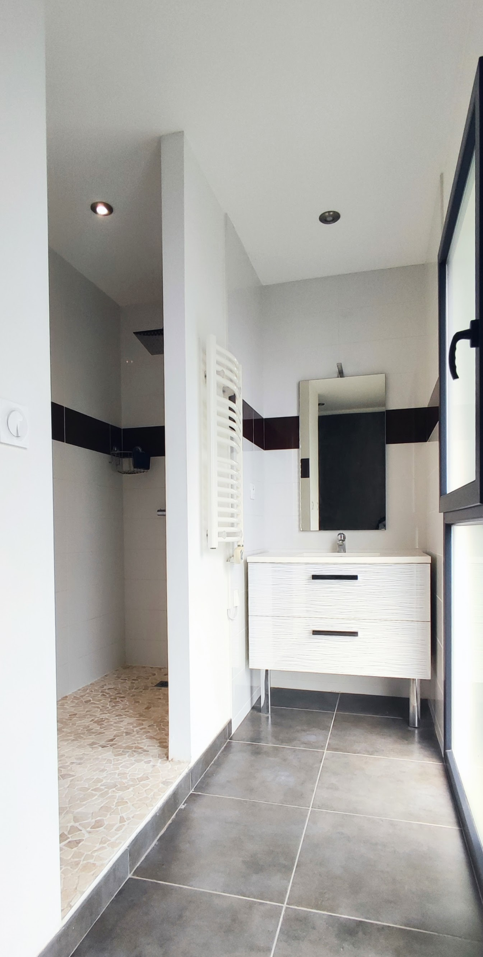 À l'étage, le palier dessert, une salle de bains, un WC et trois chambres avec placards intégrés, dont une belle suite parentale avec dressing, salle d'eau privative et terrasse.