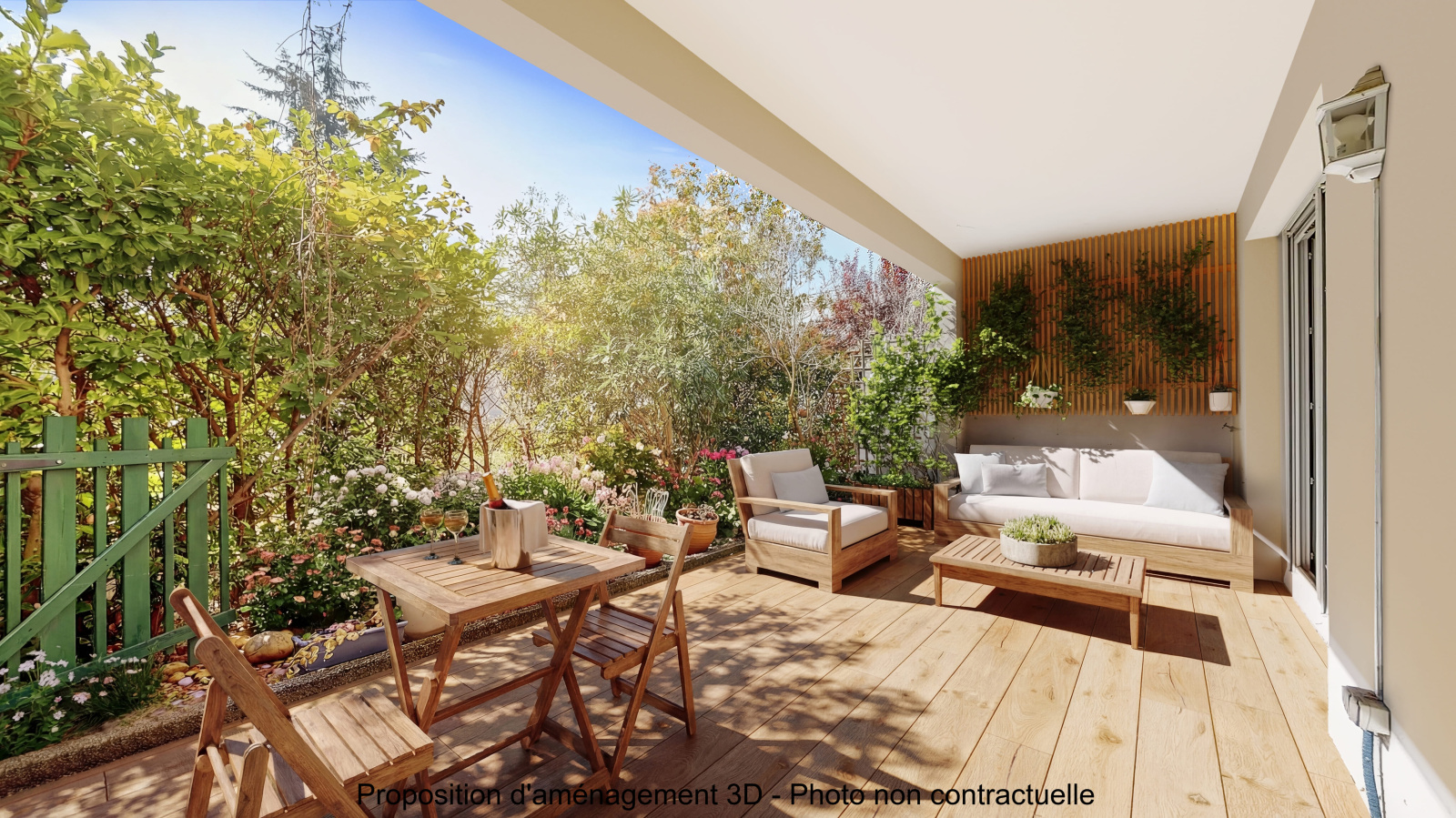 La pièce de vie lumineuse est prolongée par la 1ère terrasse et le jardin exposés Sud, qui vous permettront de profiter d’un bel espace extérieur sans vis-à-vis dès les beaux jours.