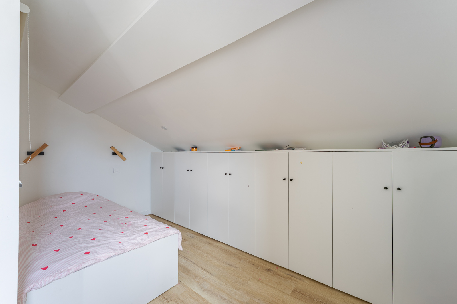 Le second étage : Intimité et flexibilité Le parcours se poursuit au deuxième étage, qui abrite deux autres chambres confortables. Cet espace niché est idéal pour accueillir des enfants, des invités ou pour créer des univers personnels au calme, complétant ainsi les quatre chambres de la maison.