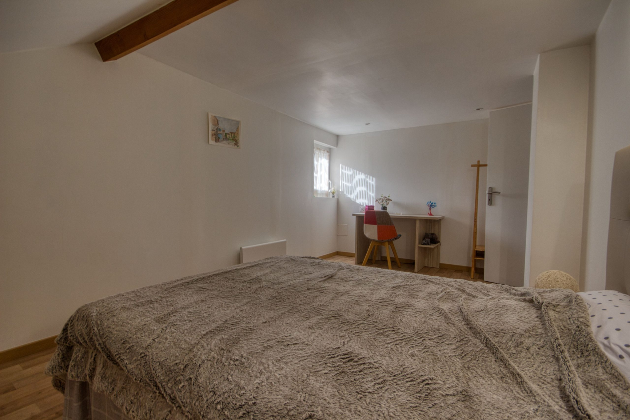 À l’étage, vous découvrirez deux chambres supplémentaires, de 11,5 m² et 14,5 m², toutes deux exposées Sud-Est, ainsi qu’une salle d’eau et un WC. Ce niveau offre également un grenier de plus de 100 m², entièrement aménageable, laissant de nombreuses possibilités d’évolution.