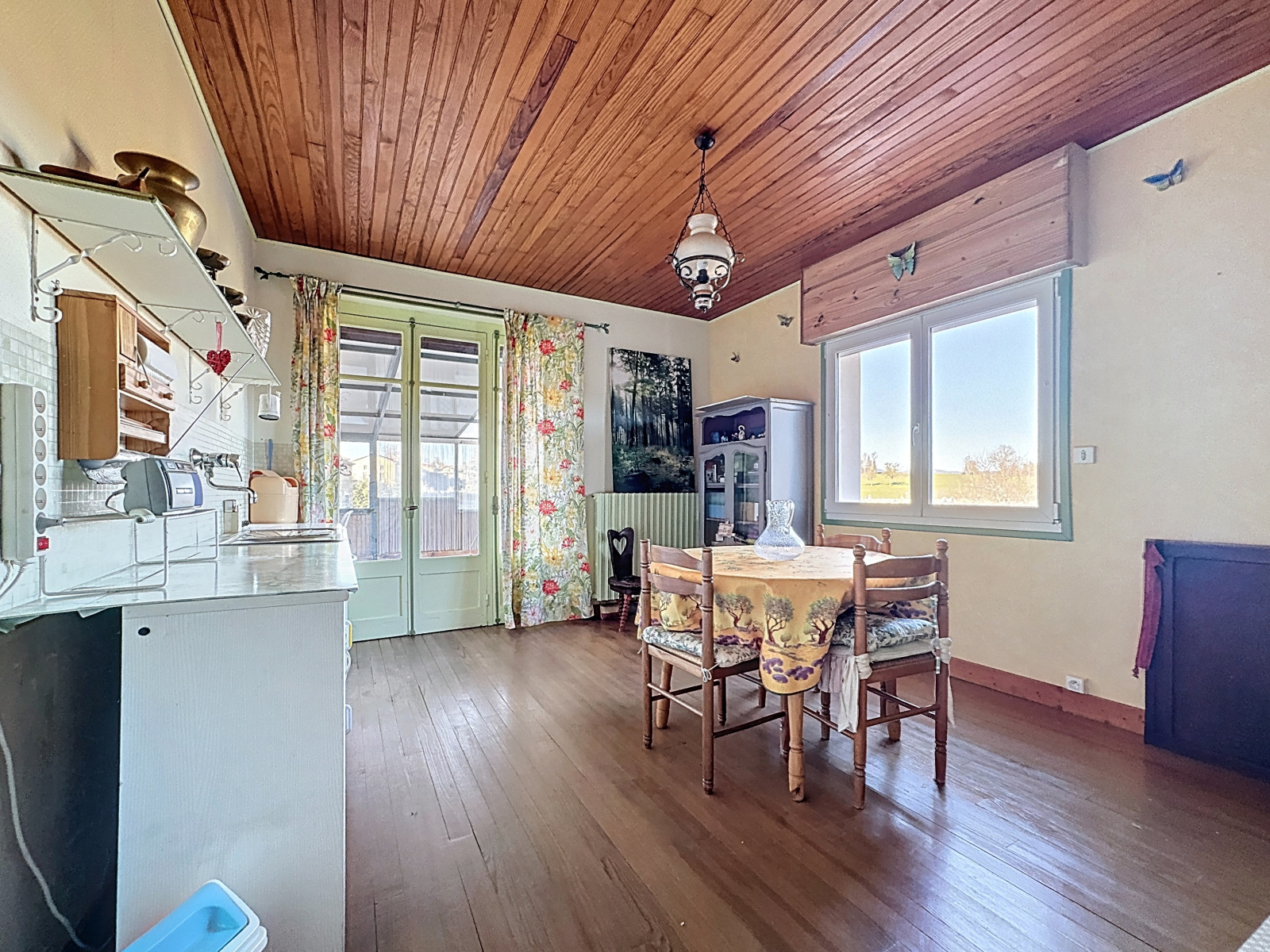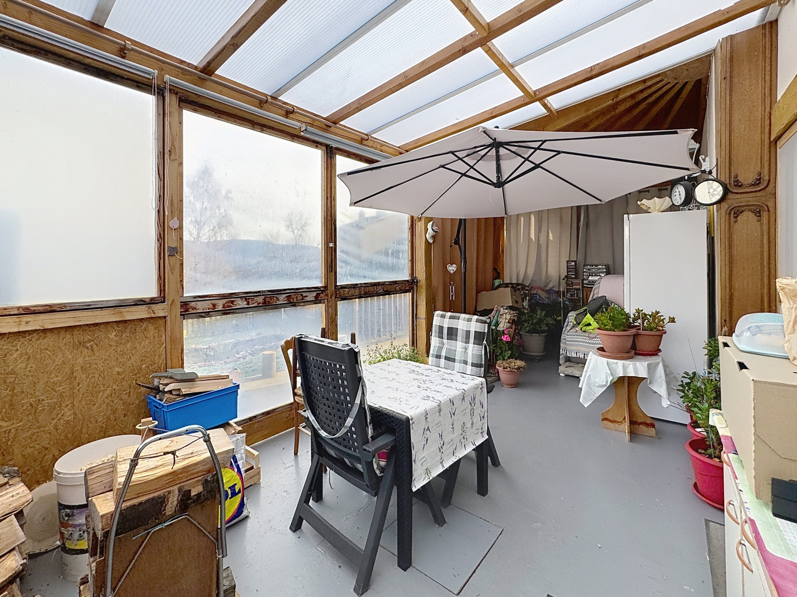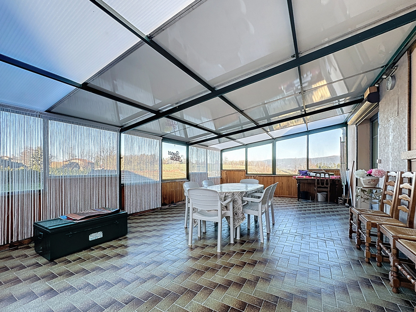 D’une surface habitable de 164,61 m² sur deux niveaux, cette maison offre un agencement flexible, avec la possibilité de créer deux logements indépendants grâce à deux entrées indépendantes. Au rez-de-chaussée, on trouve un séjour, un salon, une cuisine avec cellier, une chambre, une salle d’eau et un WC. À l’étage, une cuisine, trois chambres, une grande véranda, une salle d’eau, un WC permettent d’envisager un second logement. Les vérandas apportent une luminosité exceptionnelle et offrent une très belle vue sur le massif du Forez.