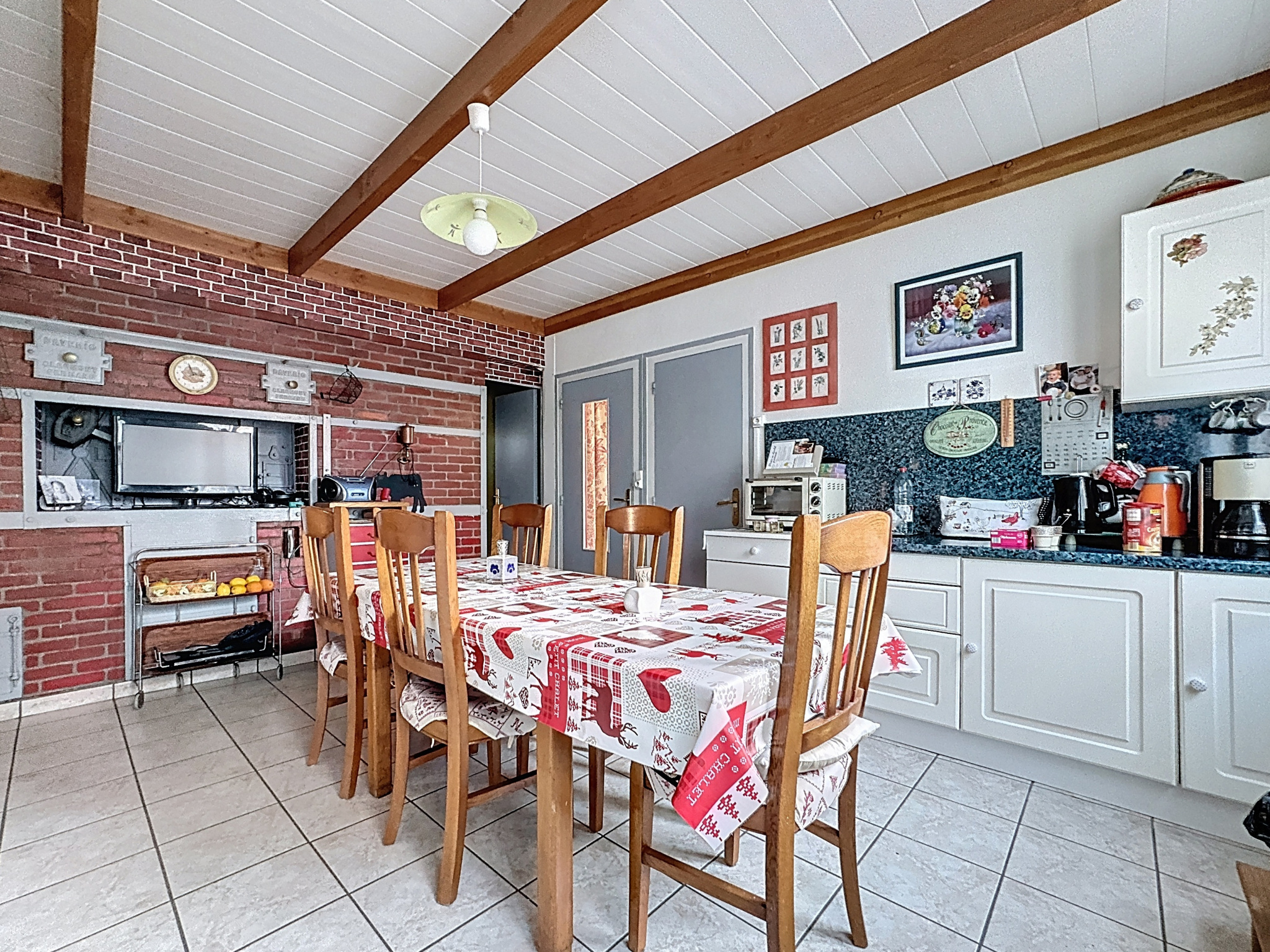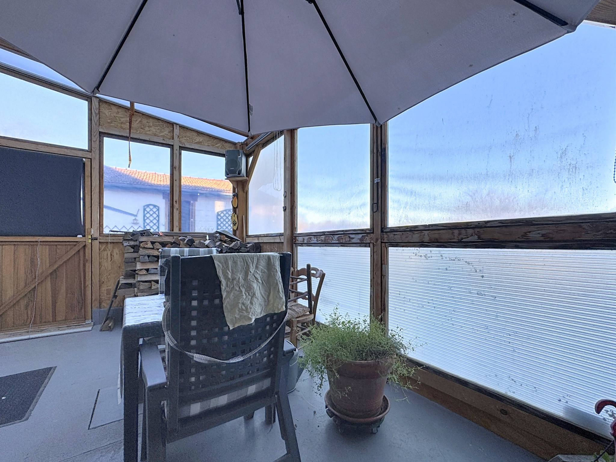 À l’extérieur, la maison dispose d’un garage/atelier de 38 m², d’une cave en pierres avec puits, d’une dépendance et d’un terrain clos et aménagé de 621 m². Les prestations sont de qualité : toiture et couverture de la véranda récemment rénovées, isolation complète, fenêtres en aluminium double vitrage, volets roulants électriques et chauffage assuré par une pompe à chaleur récente complétée par deux poêles à bois.