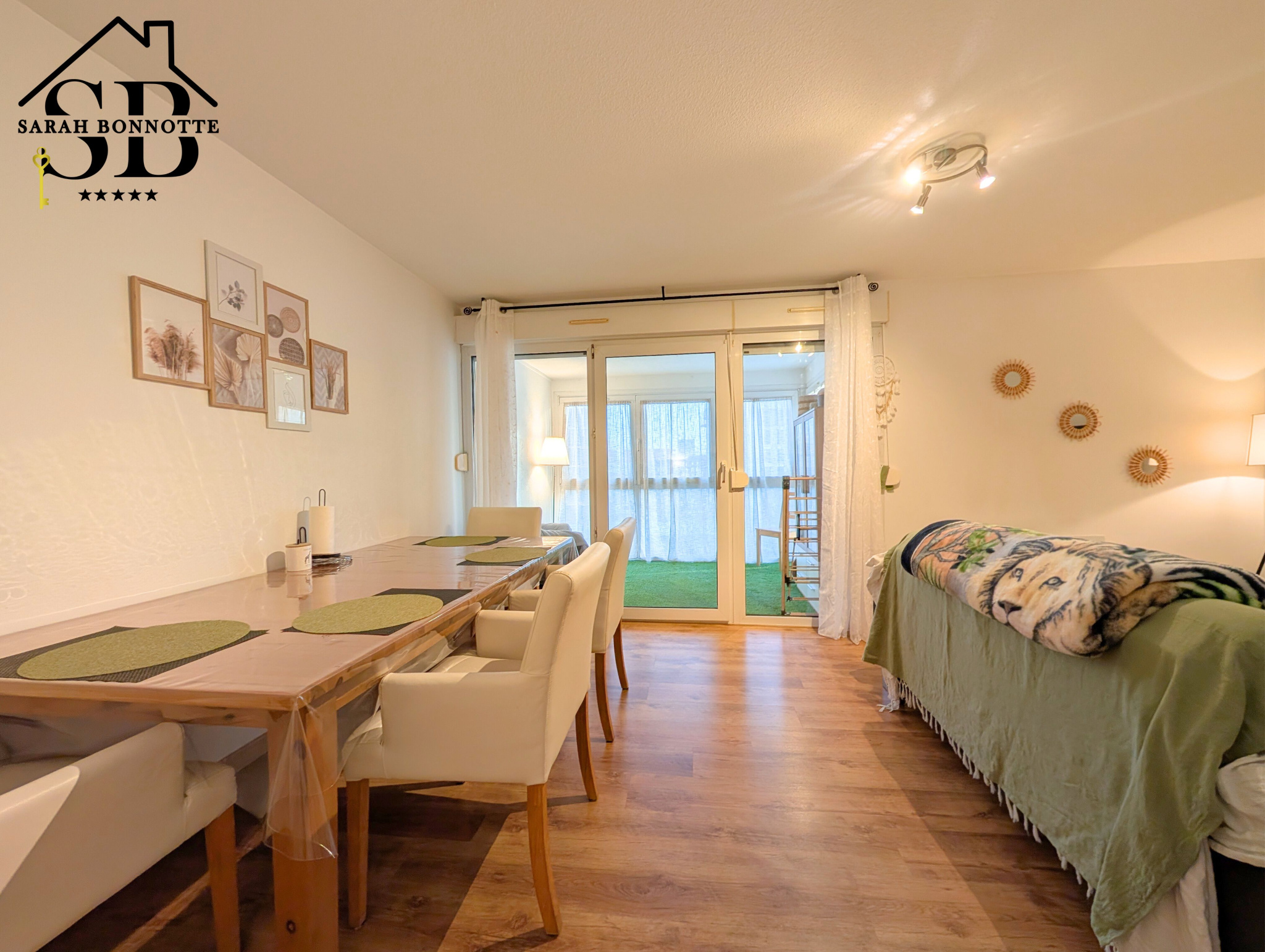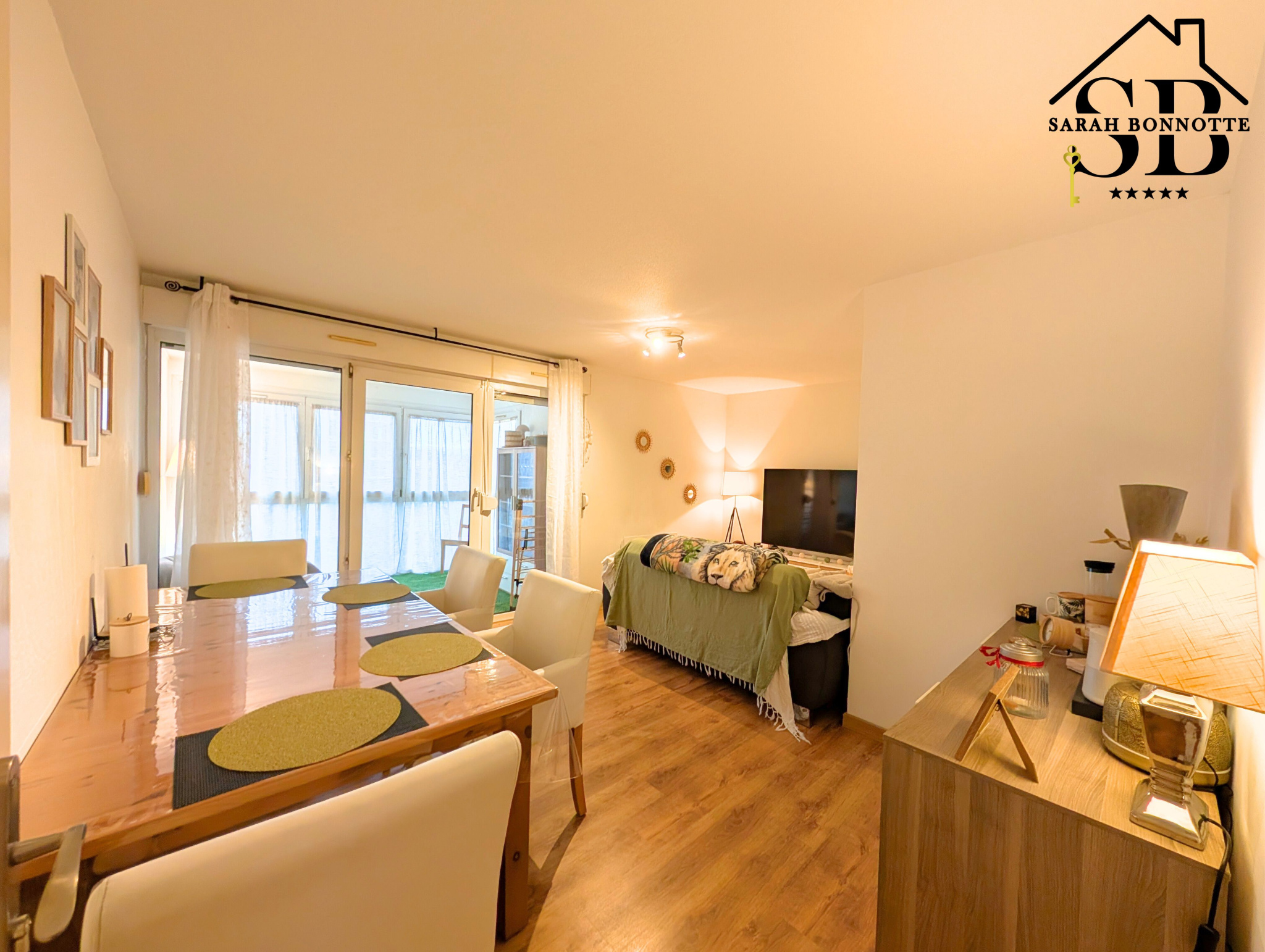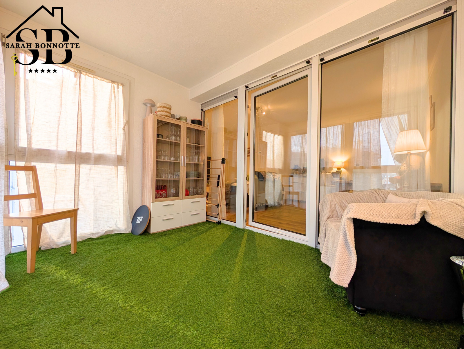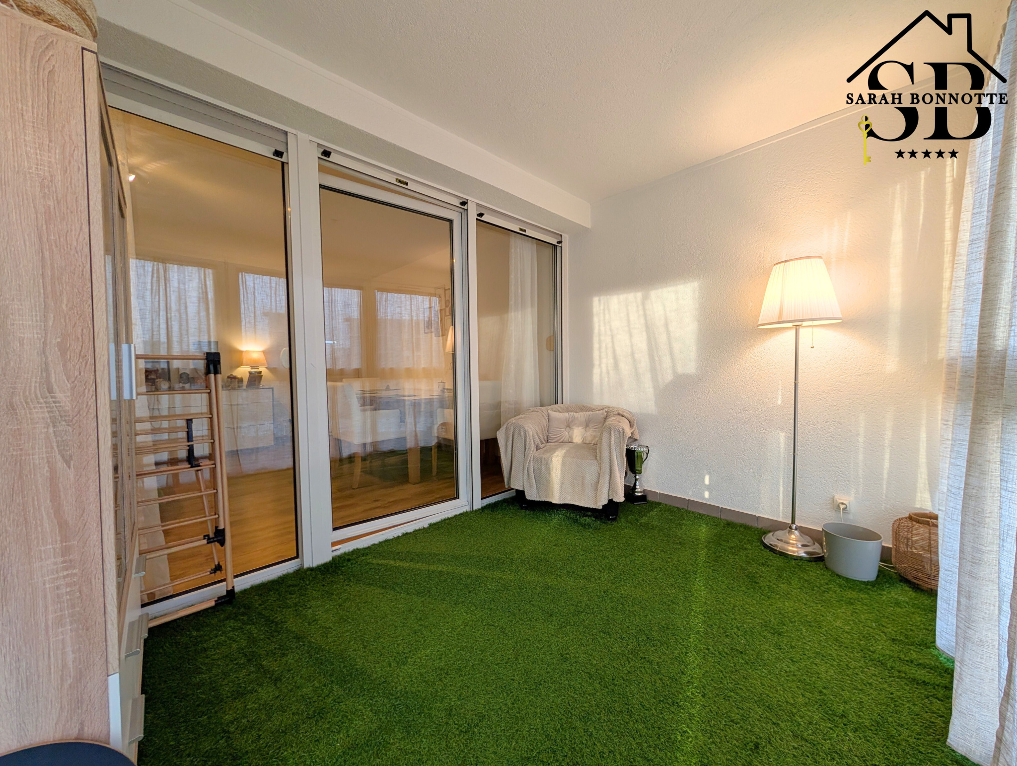 La pièce de vie, baignée de lumière naturelle, donne sur une splendide loggia vitrée aménagée orientée plein Sud, vous permettant de profiter du soleil tout au long de la journée, d'Est en Ouest, pour des moments de détente très agréables.